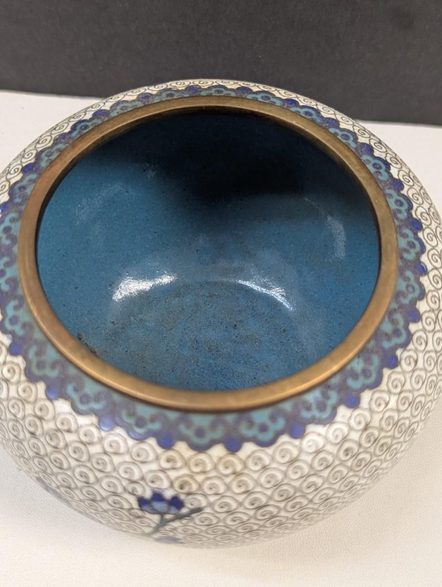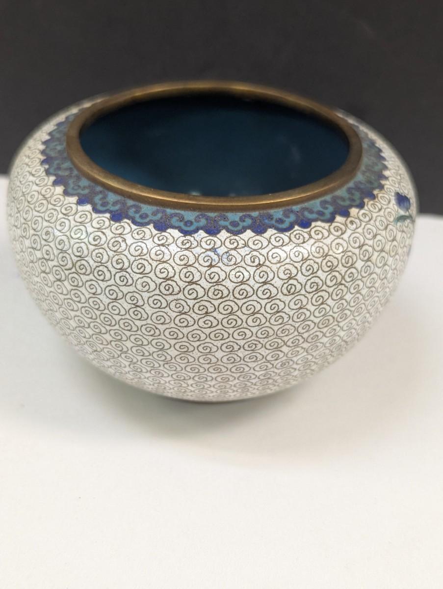 The Antique Chinese Cloisonne Jar is a stunning piece of Asian antiques originating from China. Made from cloisonne, a method of decorating metal by welding or soldering thin pieces of metal to the surface, this jar showcases intricate designs and craftsmanship. With a rich history and cultural significance, this antique Chinese cloisonne jar is a unique and valuable addition to any collection of Asian antiques or Chinese art.