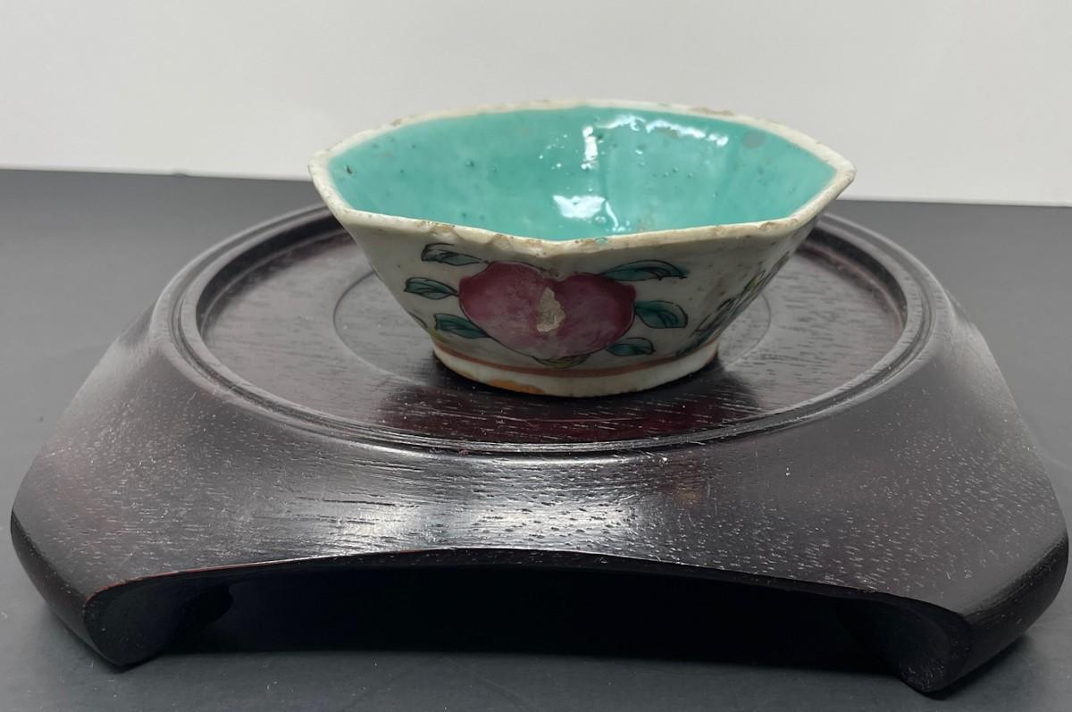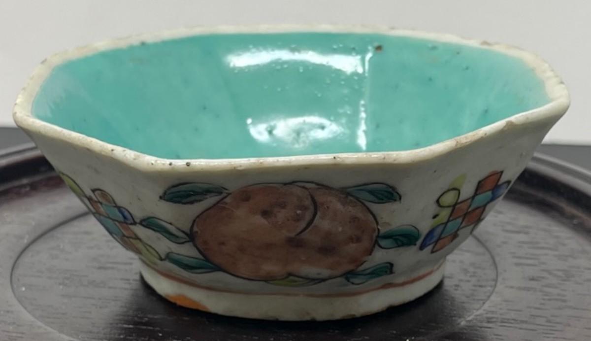 Description: Antique Chinese dish bowl Qing Dynasty era Measurement approximate: 4"w x 1.5"h; Material: Porcelain