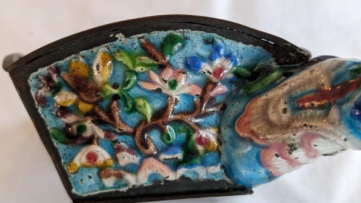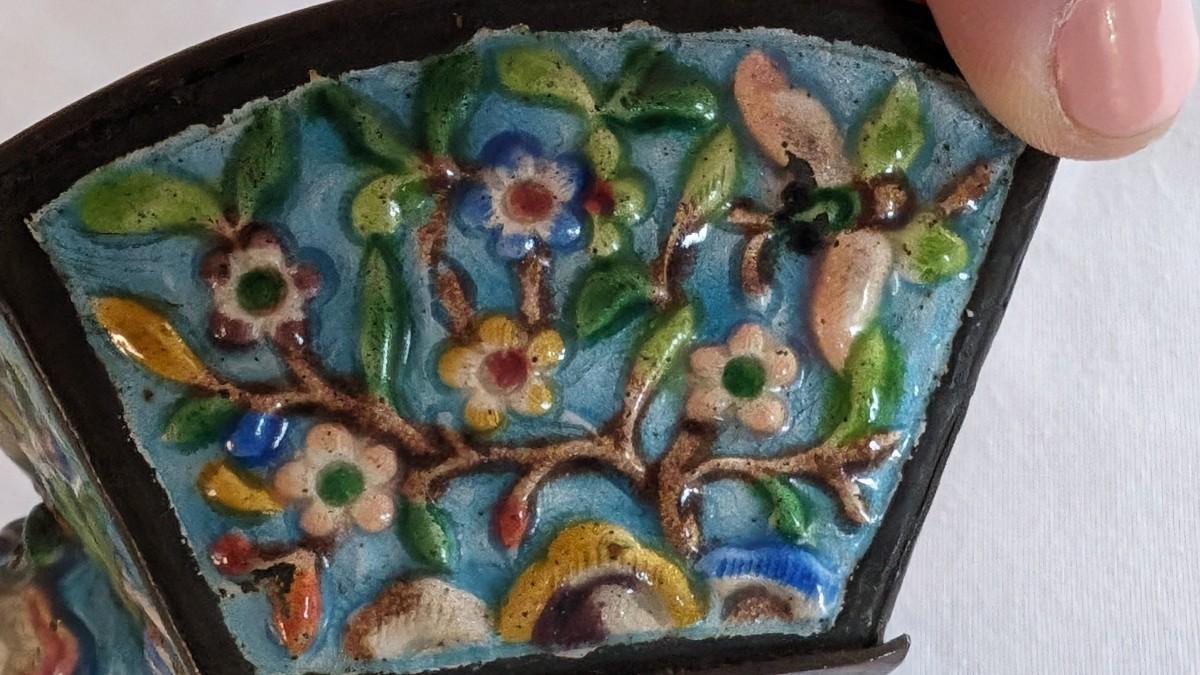 Antique Chinese Enamel Cloisonne Metal Silk Iron