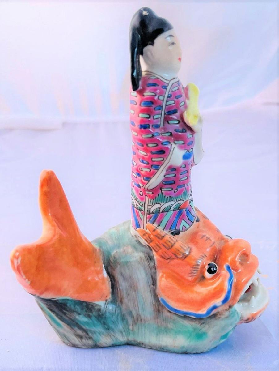 Antique Chinese Figure Riding a Dragon