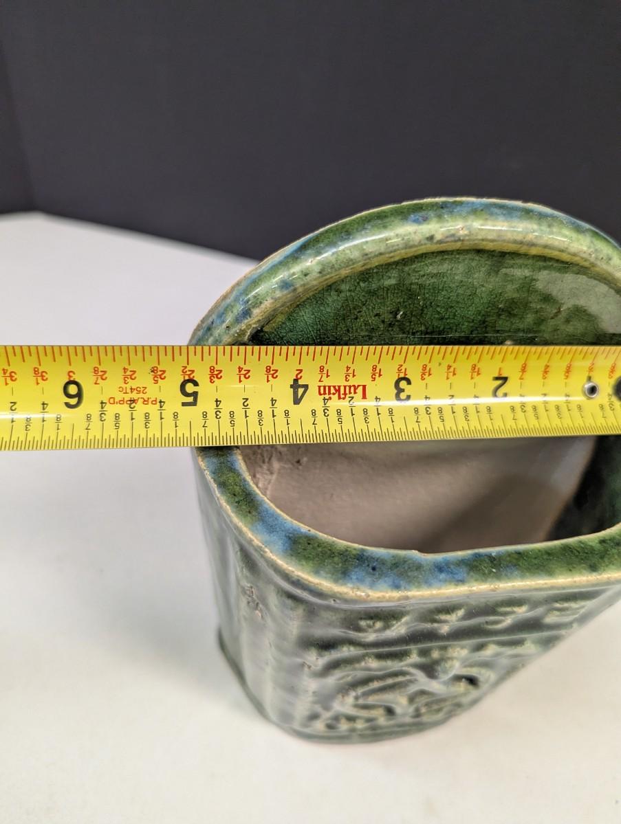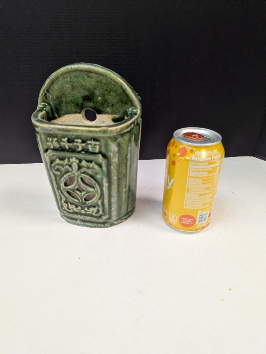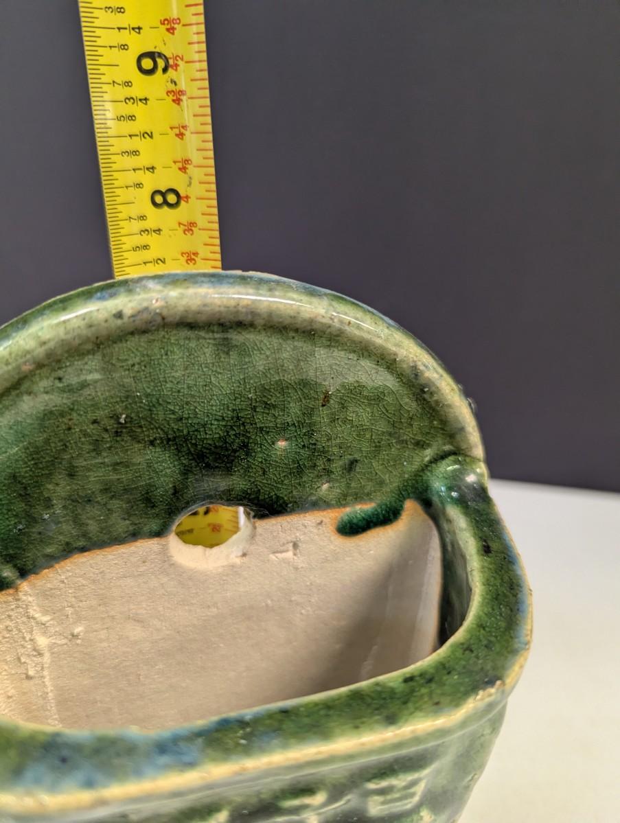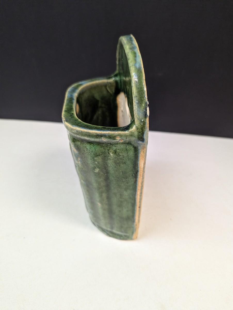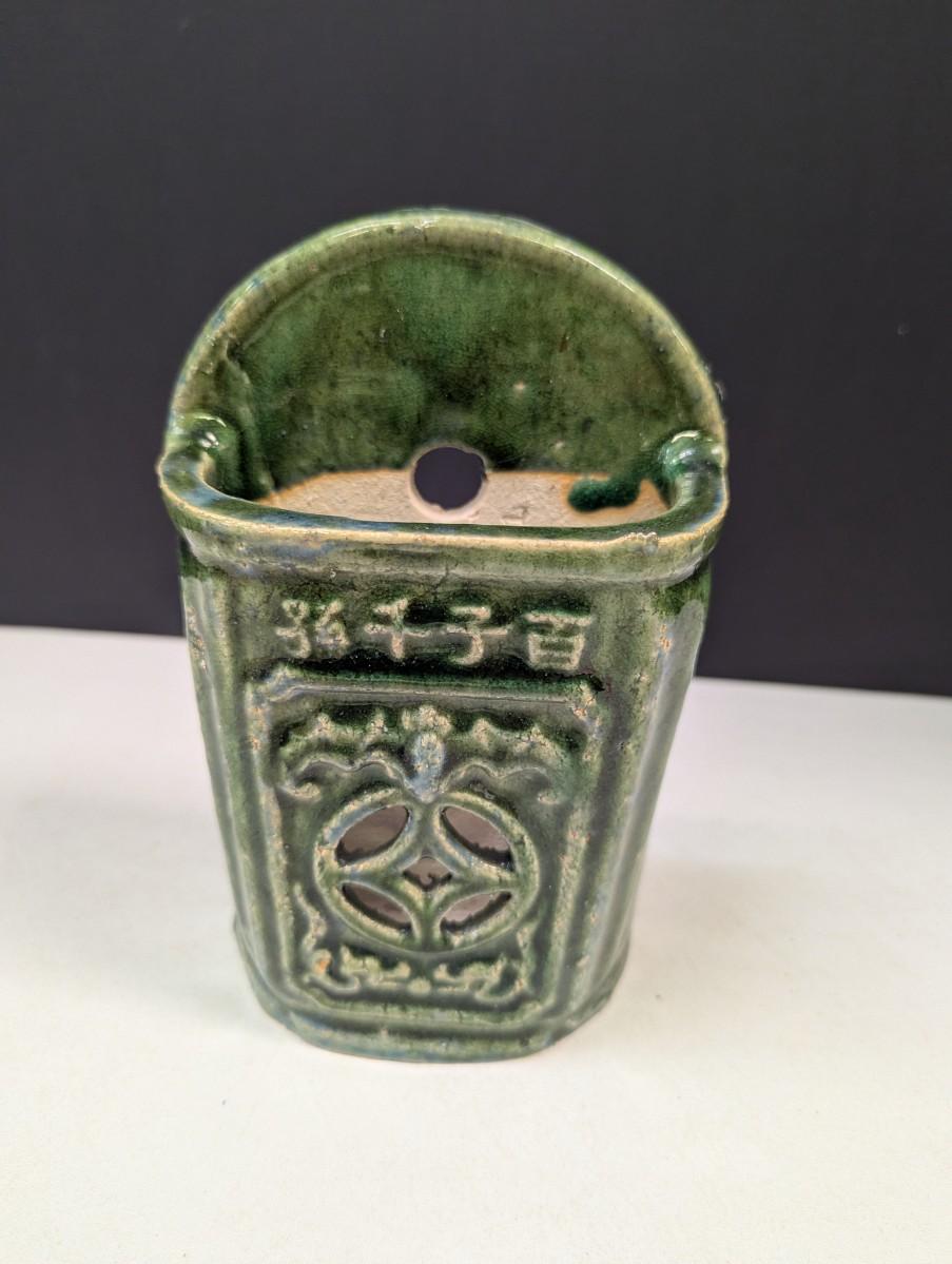Antique Chinese Green Glazed Ceramic Wall Pocket/Chopstick Holder