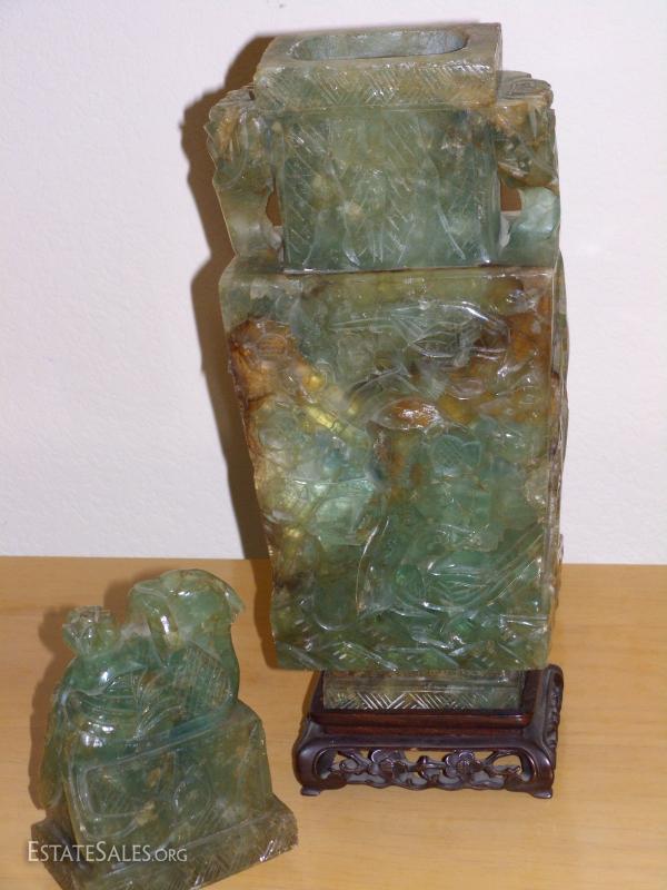 Antique Chinese Green Quartz of Phoenix