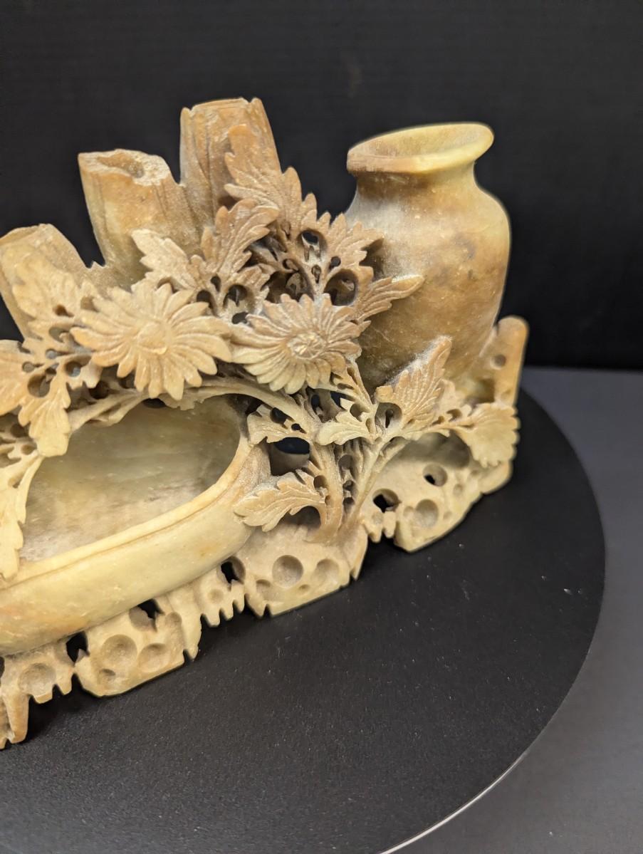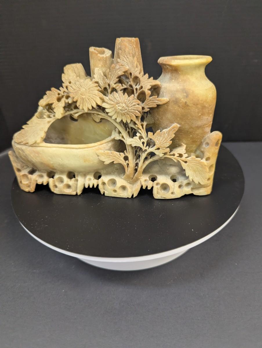 Antique Chinese Hand Carved Soapstone Statue