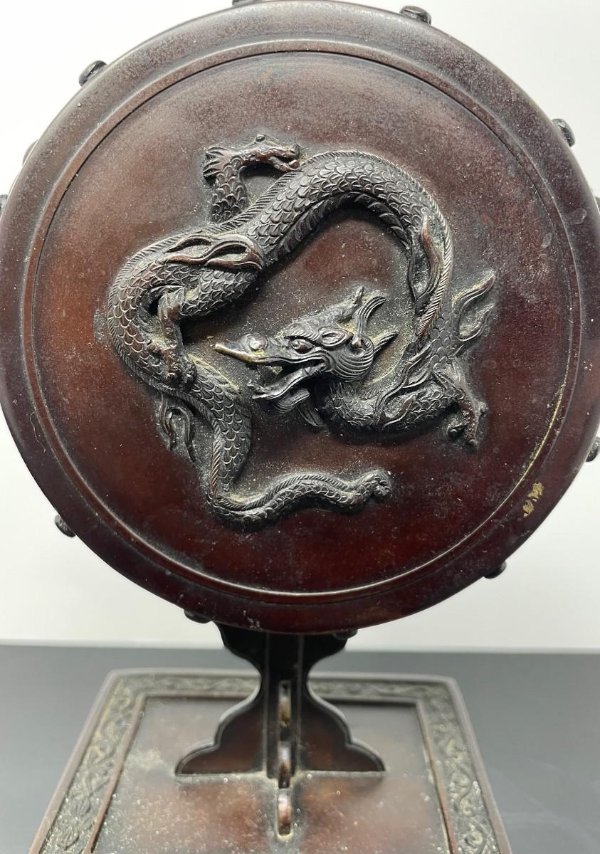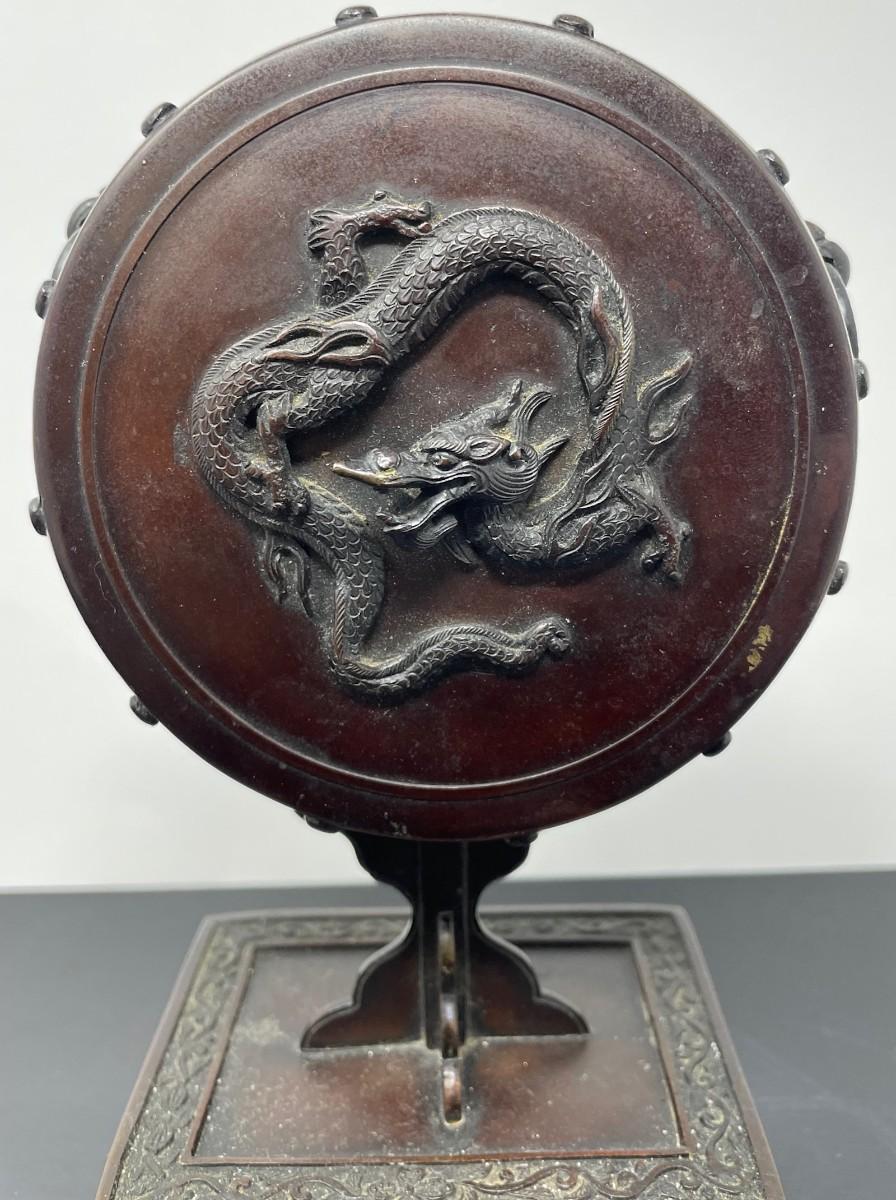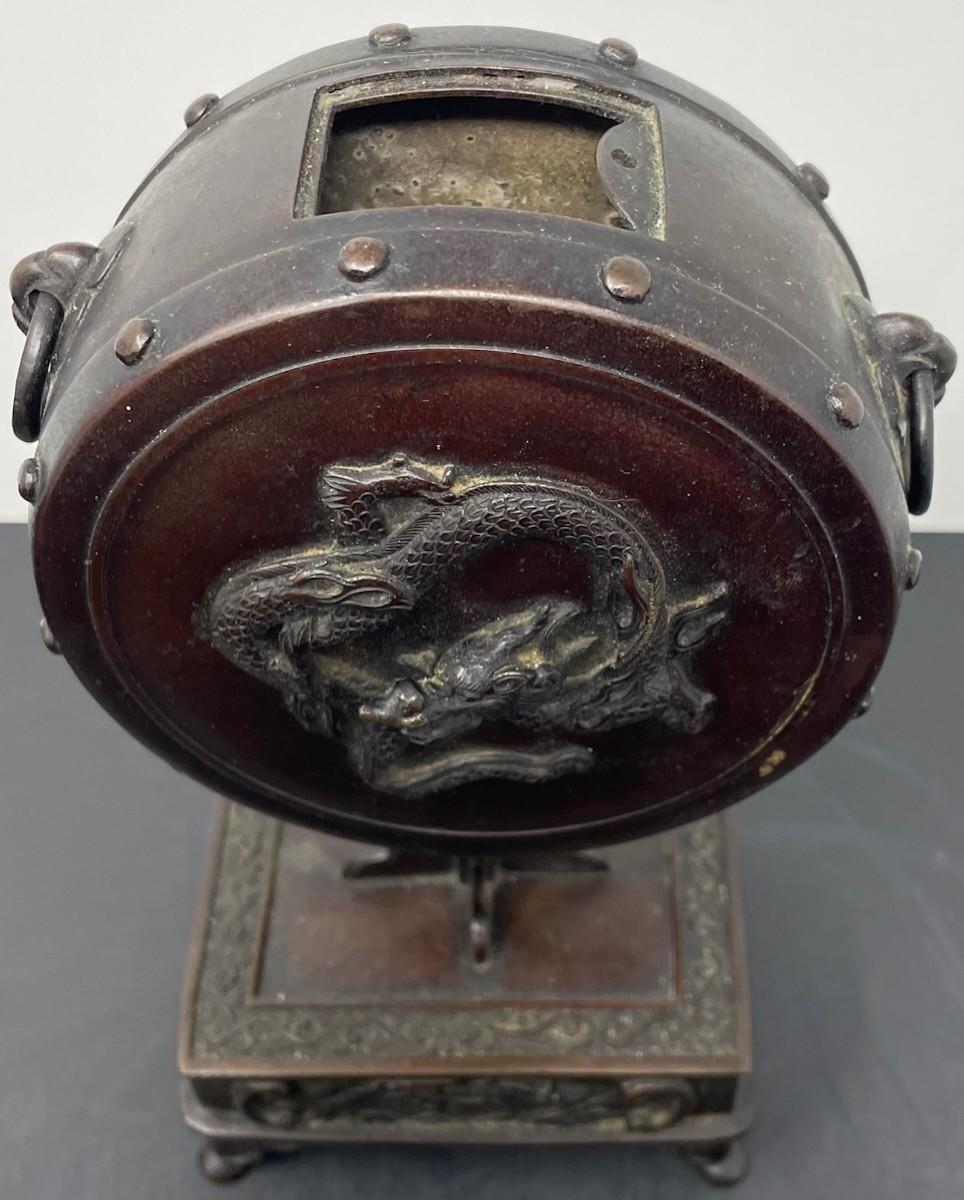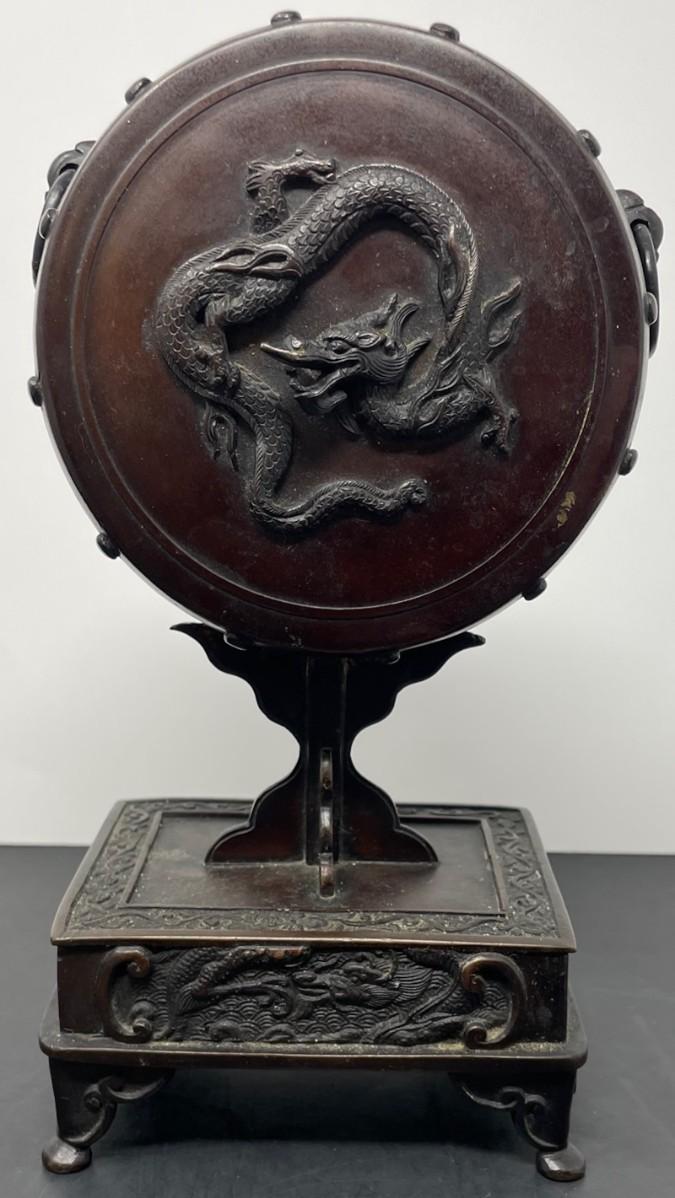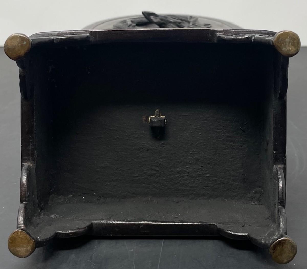 Description: ANTIQUE CHINESE/ JAPANESE BRONZE INCENSE BURNER. Measurement approximate: 10 H Inches. Material: Bronze