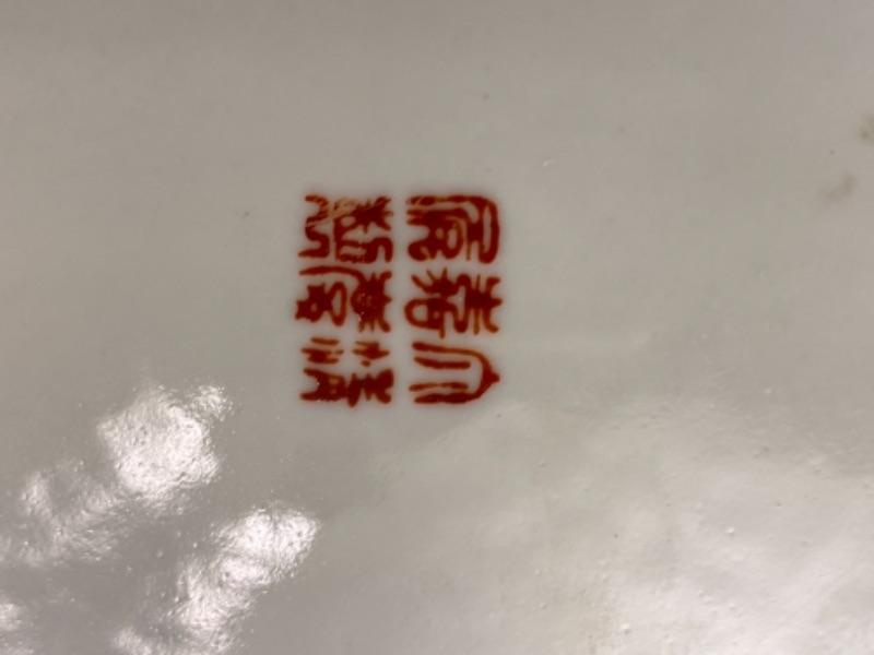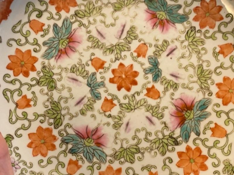 Pair Antique Chinese Porcelain Famille Rose raised rim plates Lotus Bat