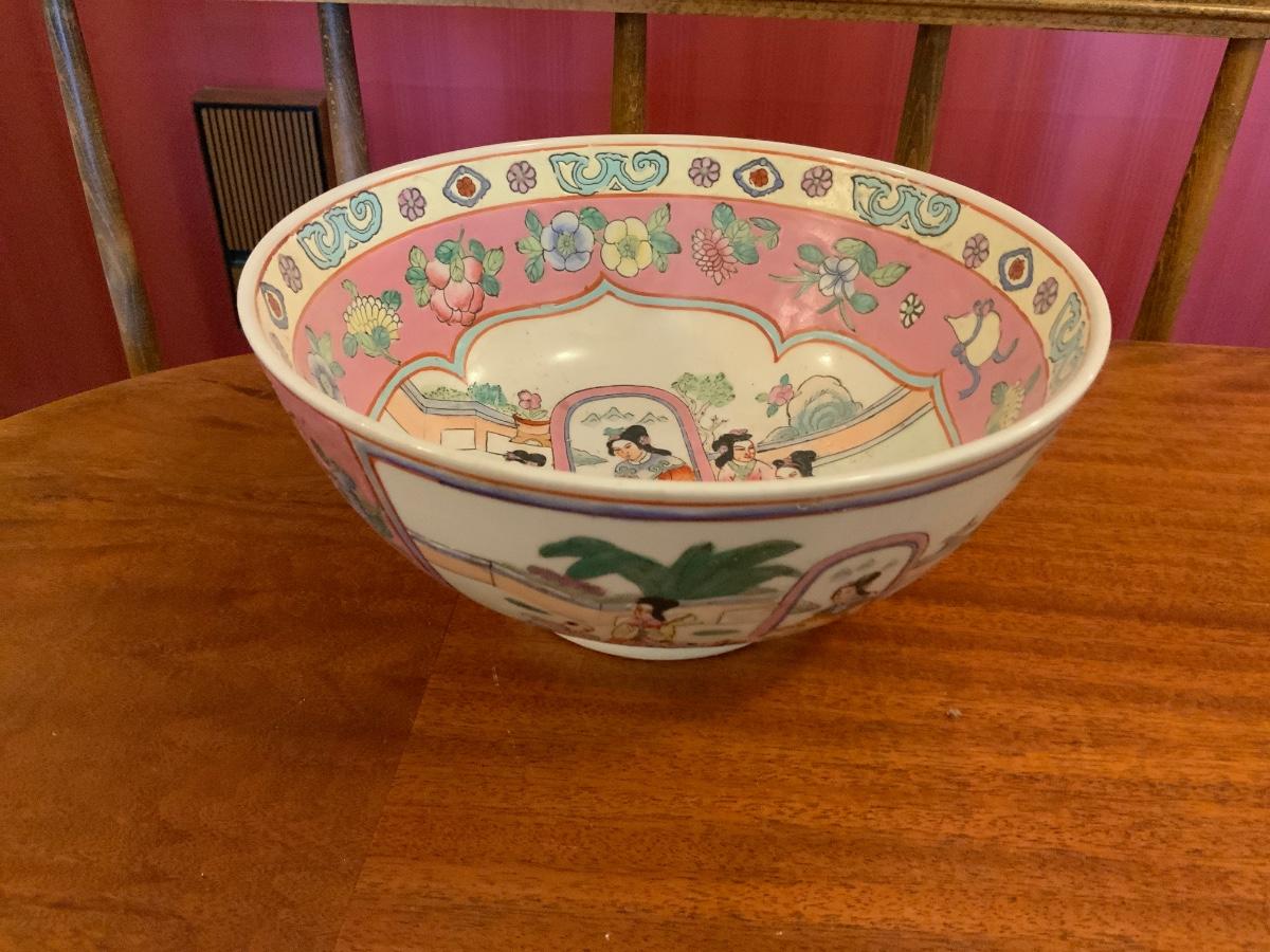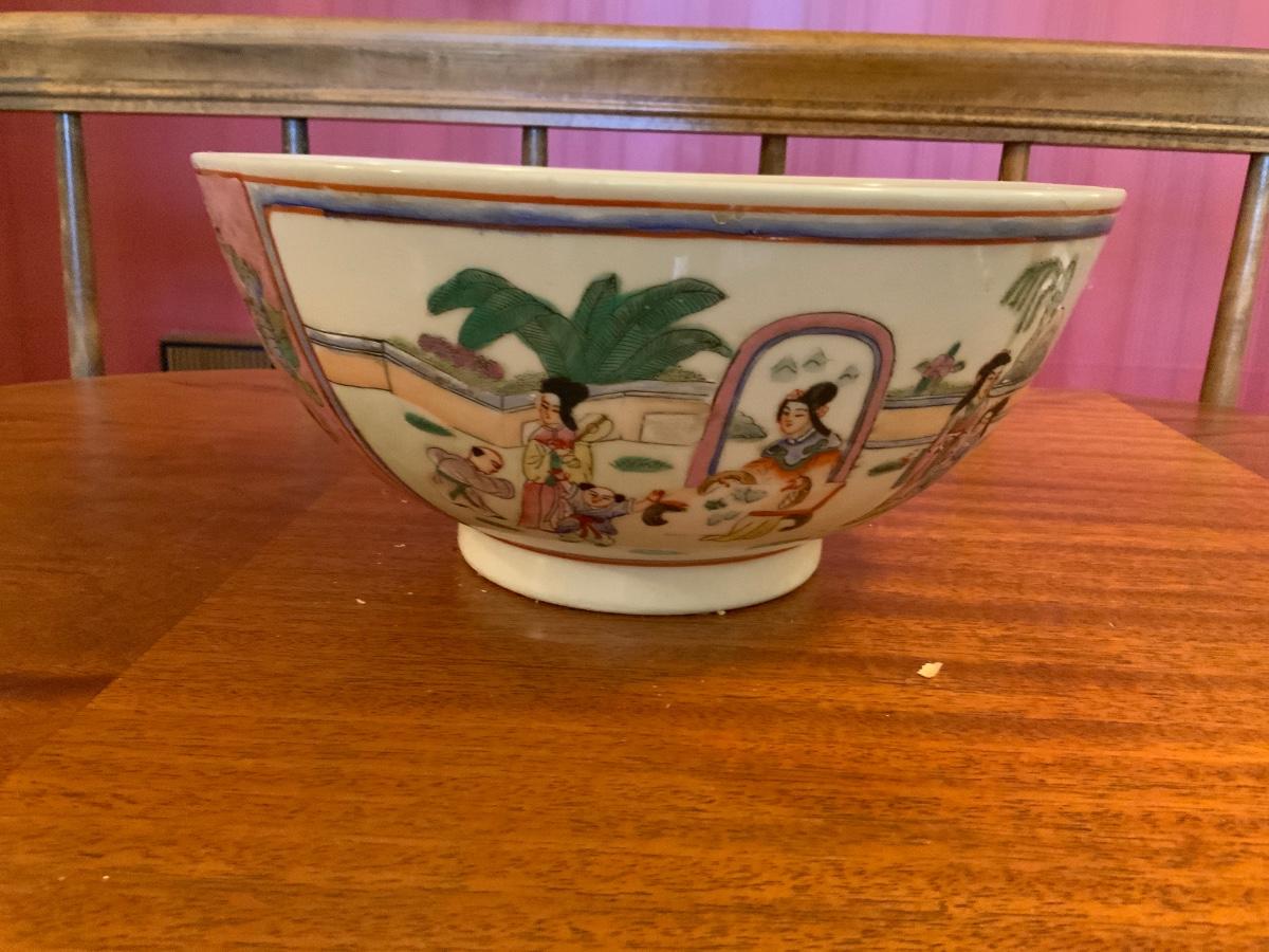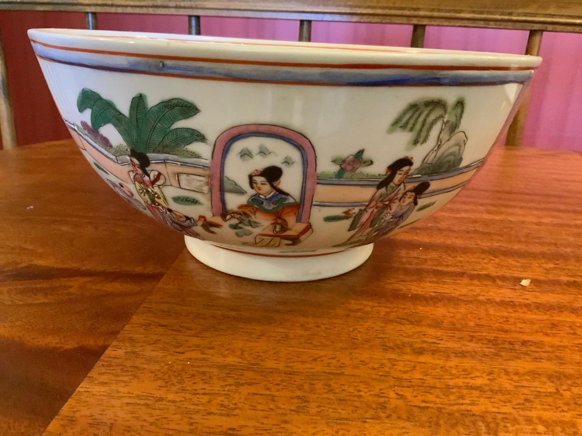 Antique Chinese Qing Dynasty CA 1050 Deep Famille Rose Bowl Figural & Flowers