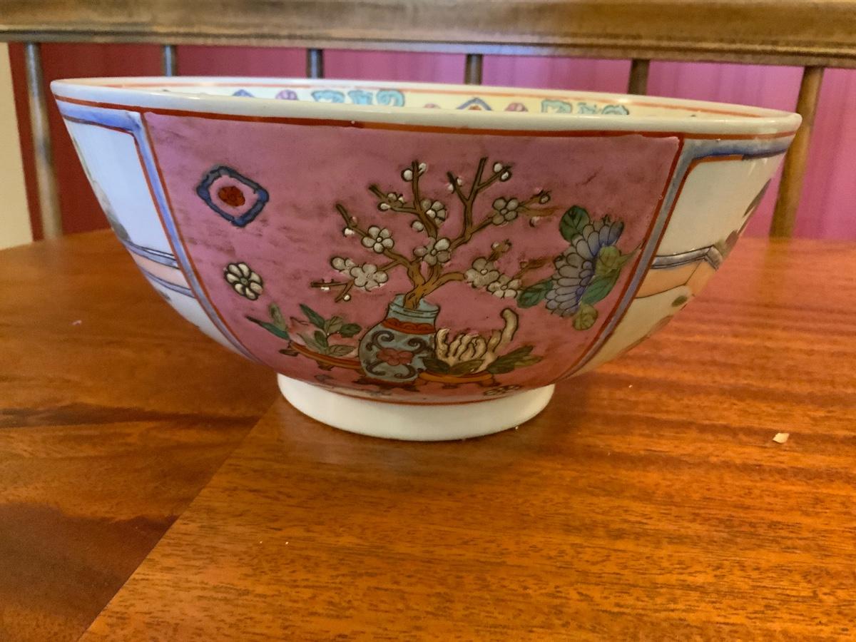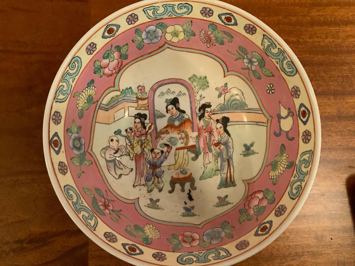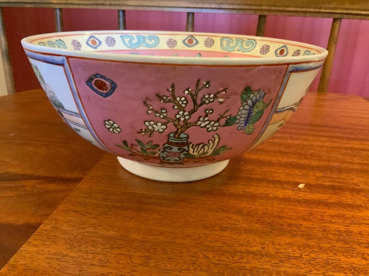 Antique Chinese Qing Dynasty CA 1050 Deep Famille Rose Bowl Figural & Flowers