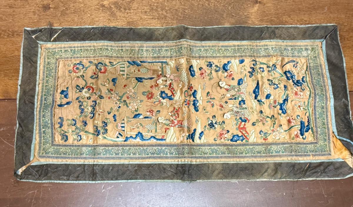 Antique Chinese Silk Embroidery Wall Hanging 28" x 13"