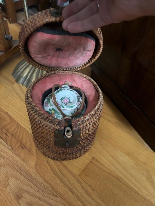 Lot 98 - Antique Chinese Teapot and Teacup Cup with Basket