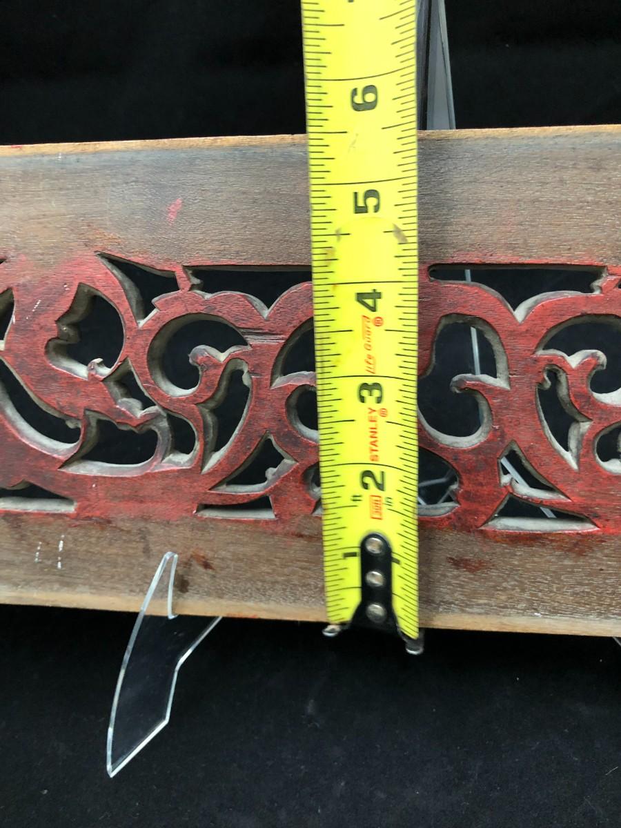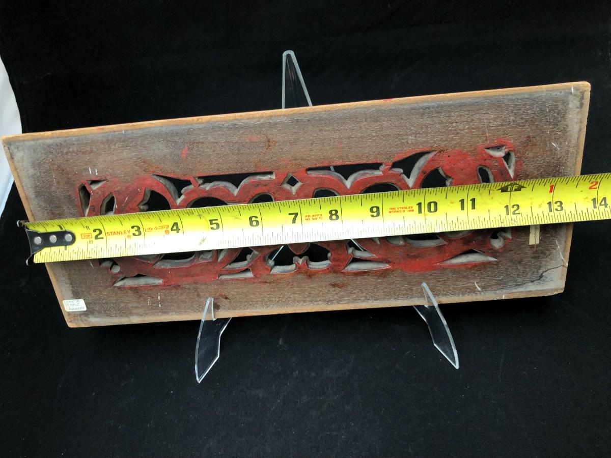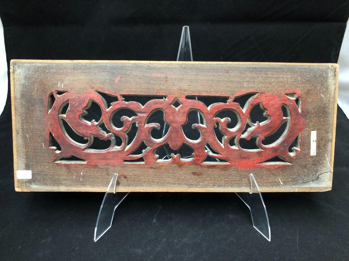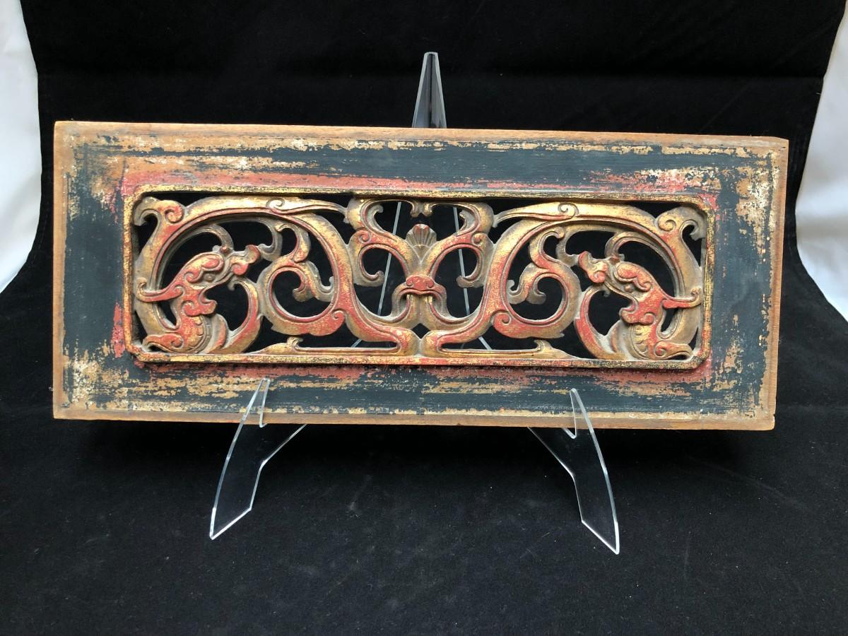 Beautiful antique Chinese temple wall panel carving. Has remnants of original red, black, and gold paint. In very good condition.
