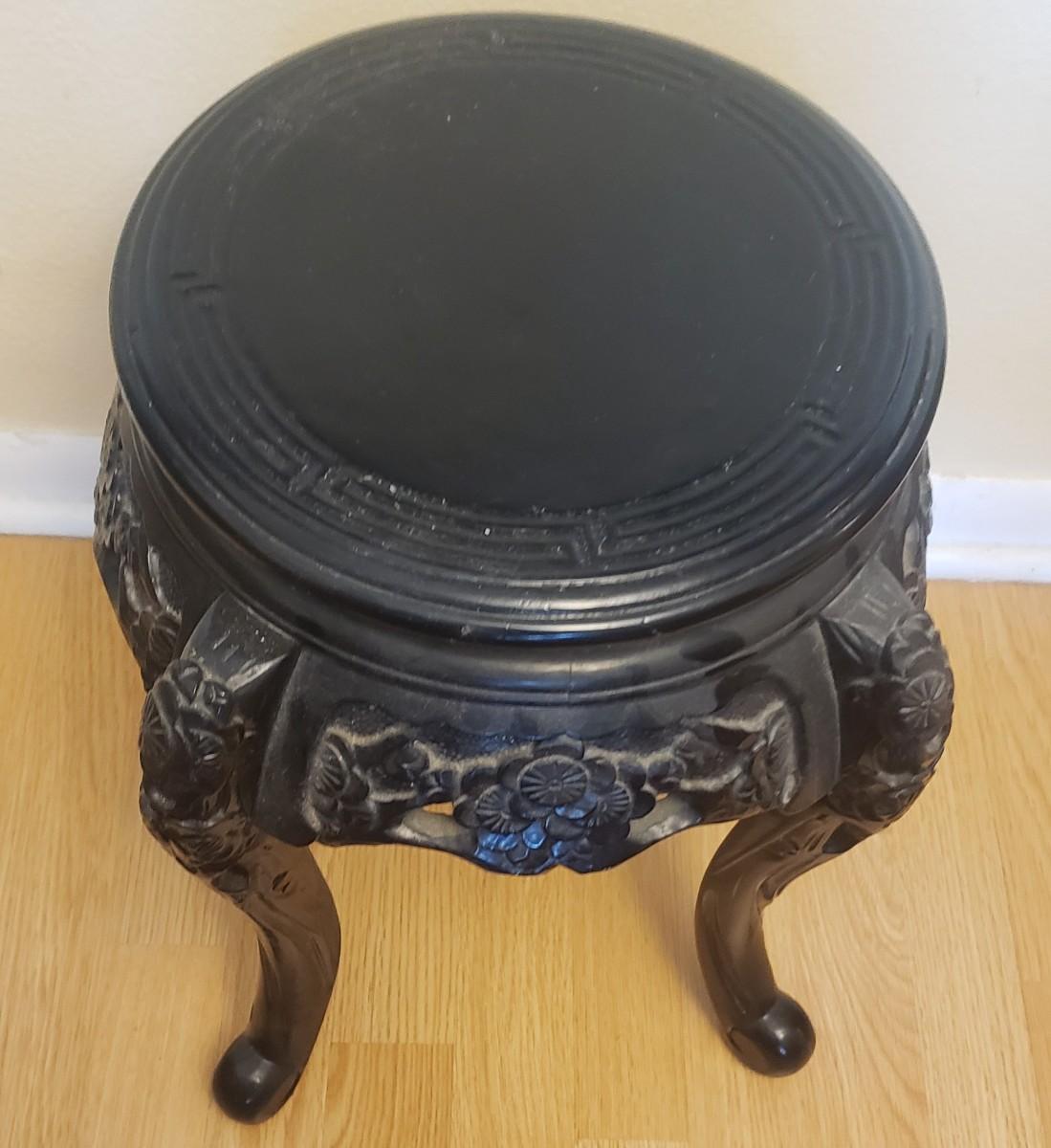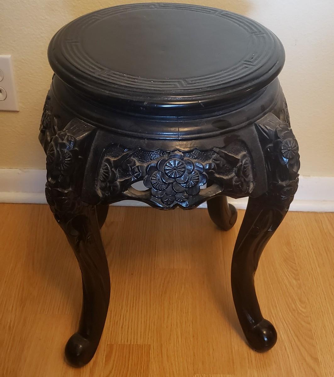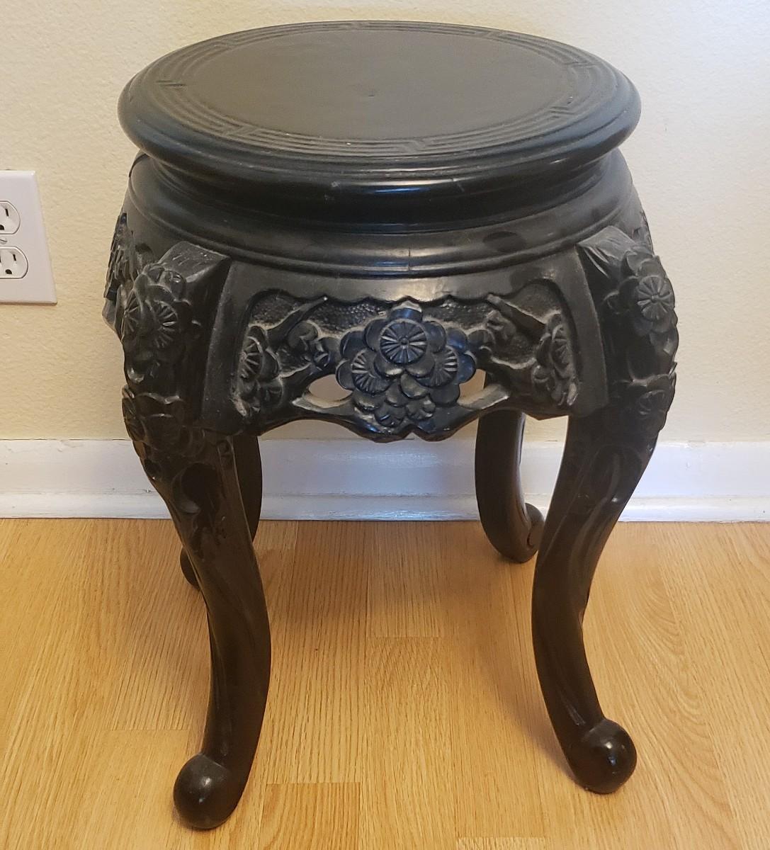 Antique Chinese Wood Lacquered Hand Carved Cabriole Legs Side Table/Plant Stand
