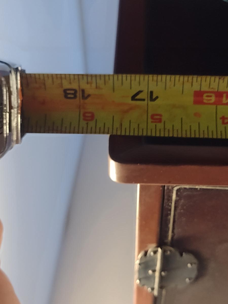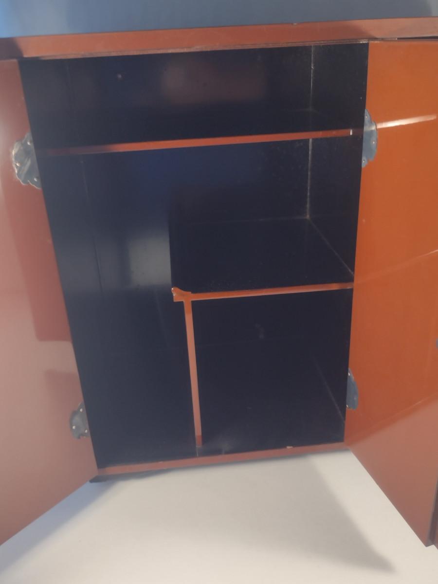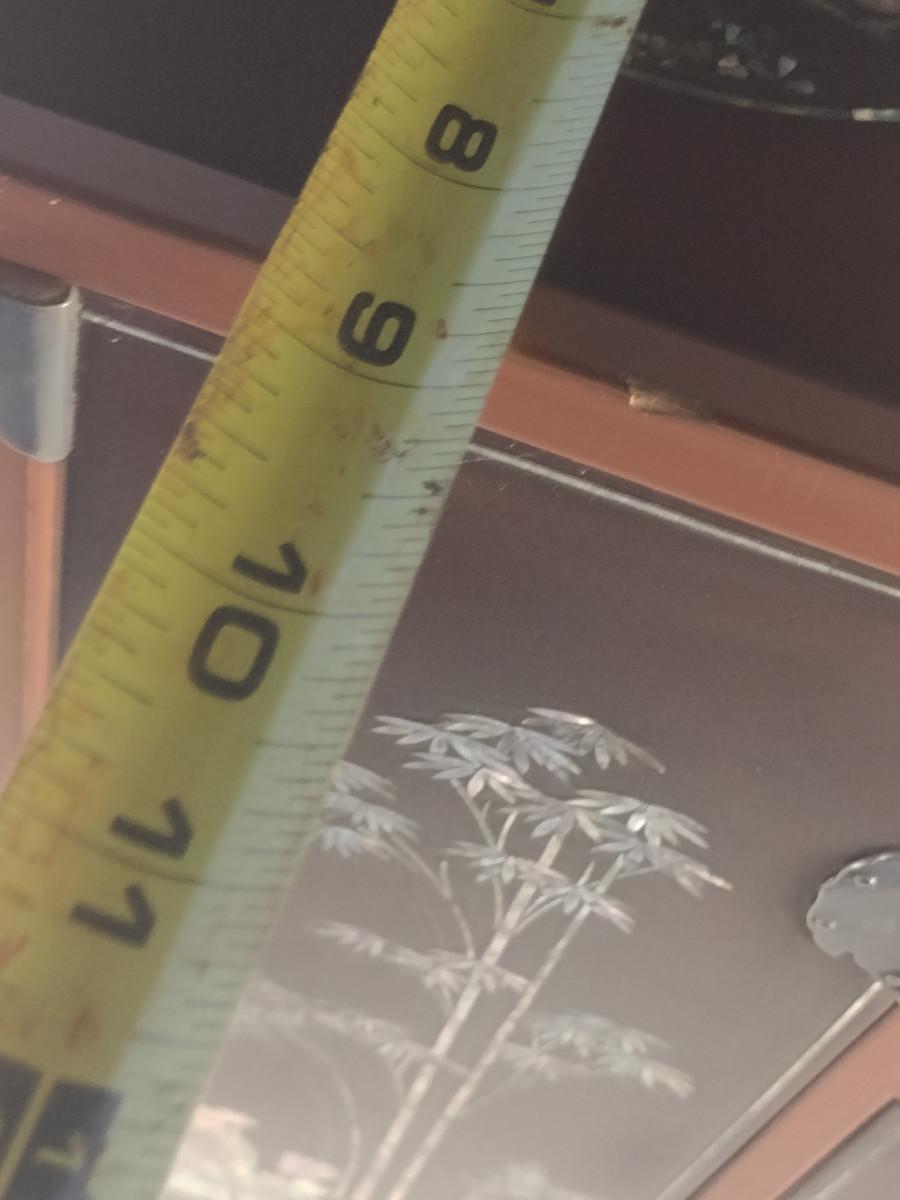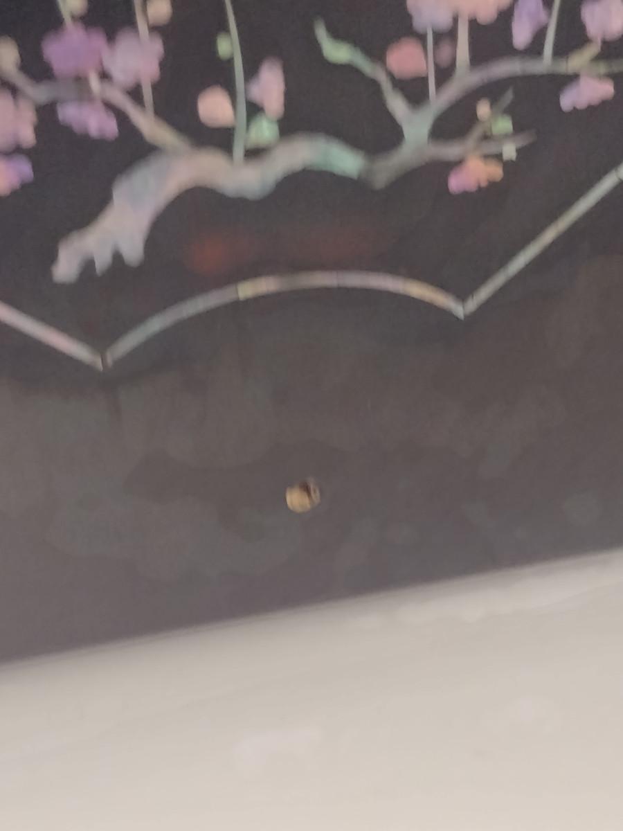 Antique Chinese Wooden Storage Box with Mother of Pearl Inlay- Approx 17 1/2" x 8 3/4" x 16" Tall. Back is drilled for possible wall hanging. One foot/leg needs repair- please see all pictures for condition.