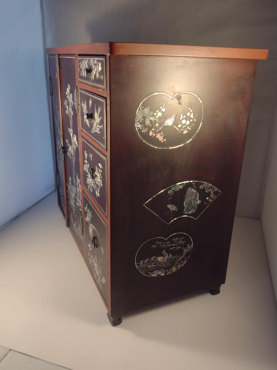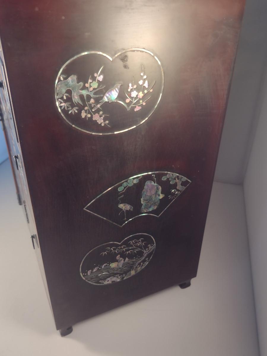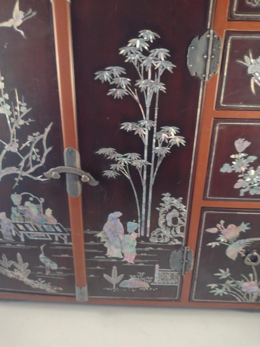 Antique Chinese Wooden Storage Box with Mother of Pearl Inlay- Approx 17 1/2" x 8 3/4" x 16" Tall
