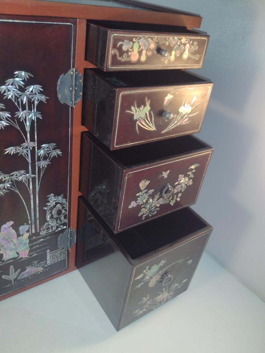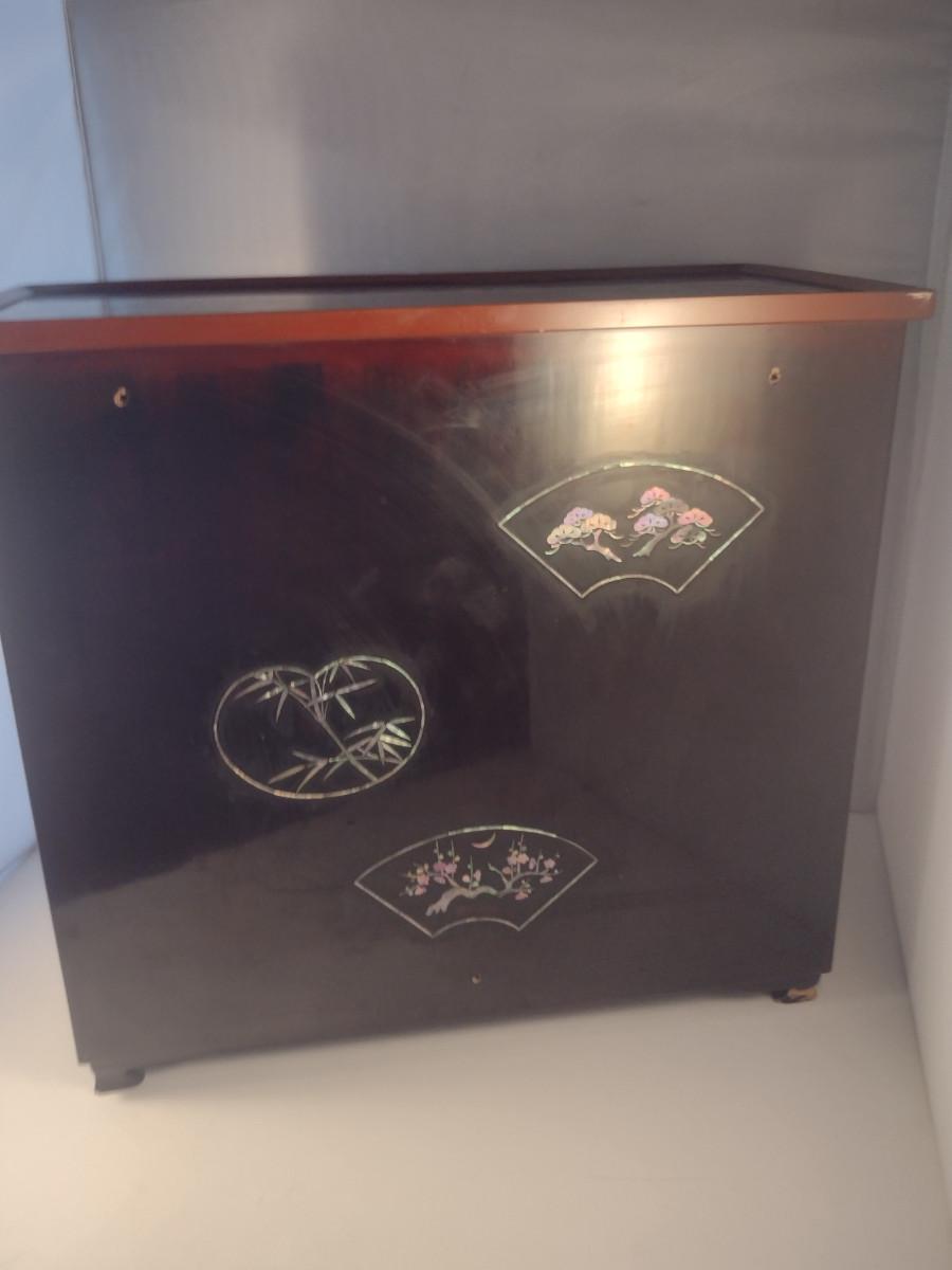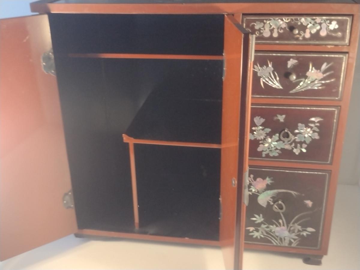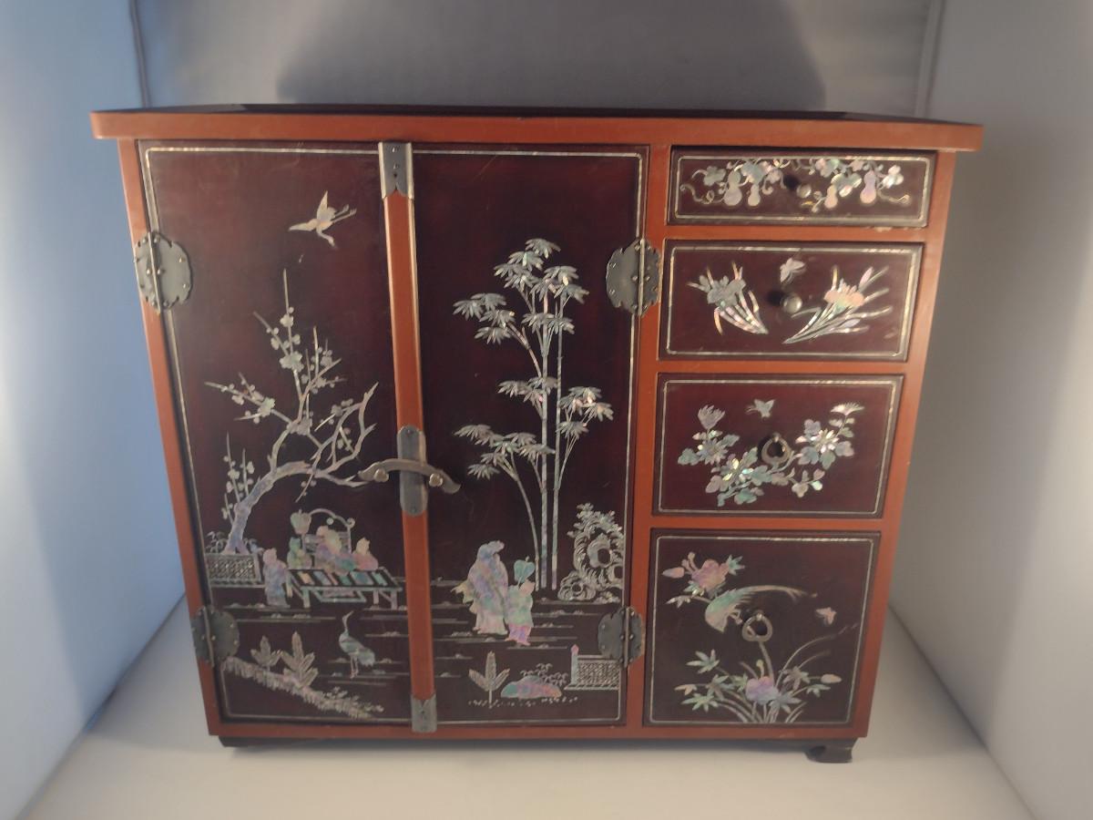 Antique Chinese Wooden Storage Box with Mother of Pearl Inlay- Approx 17 1/2" x 8 3/4" x 16" Tall
