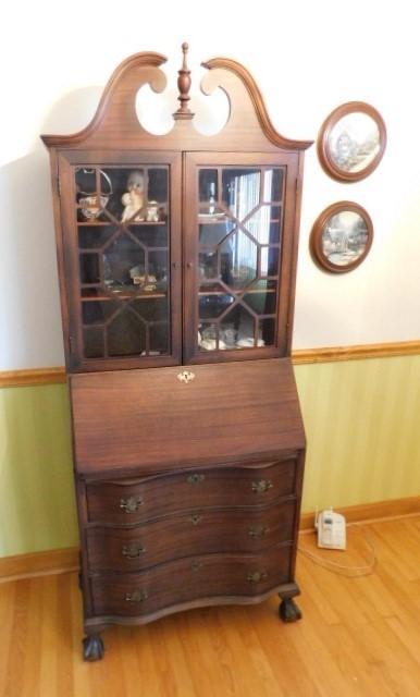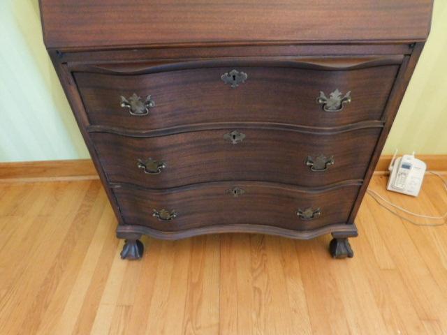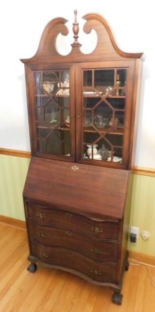 Antique Chipendale Style Secretary with Serpentine Drawers and Swan Neck Pediments 30" x 16" x 79"
