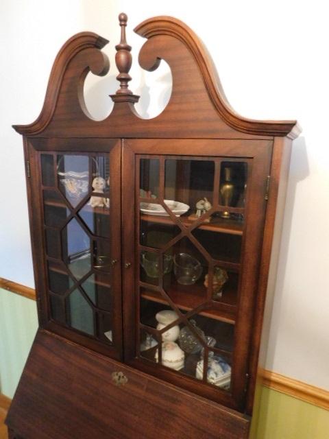 Antique Chippendale Style Secretary Serpentine Drawers & Swan Neck Pediments