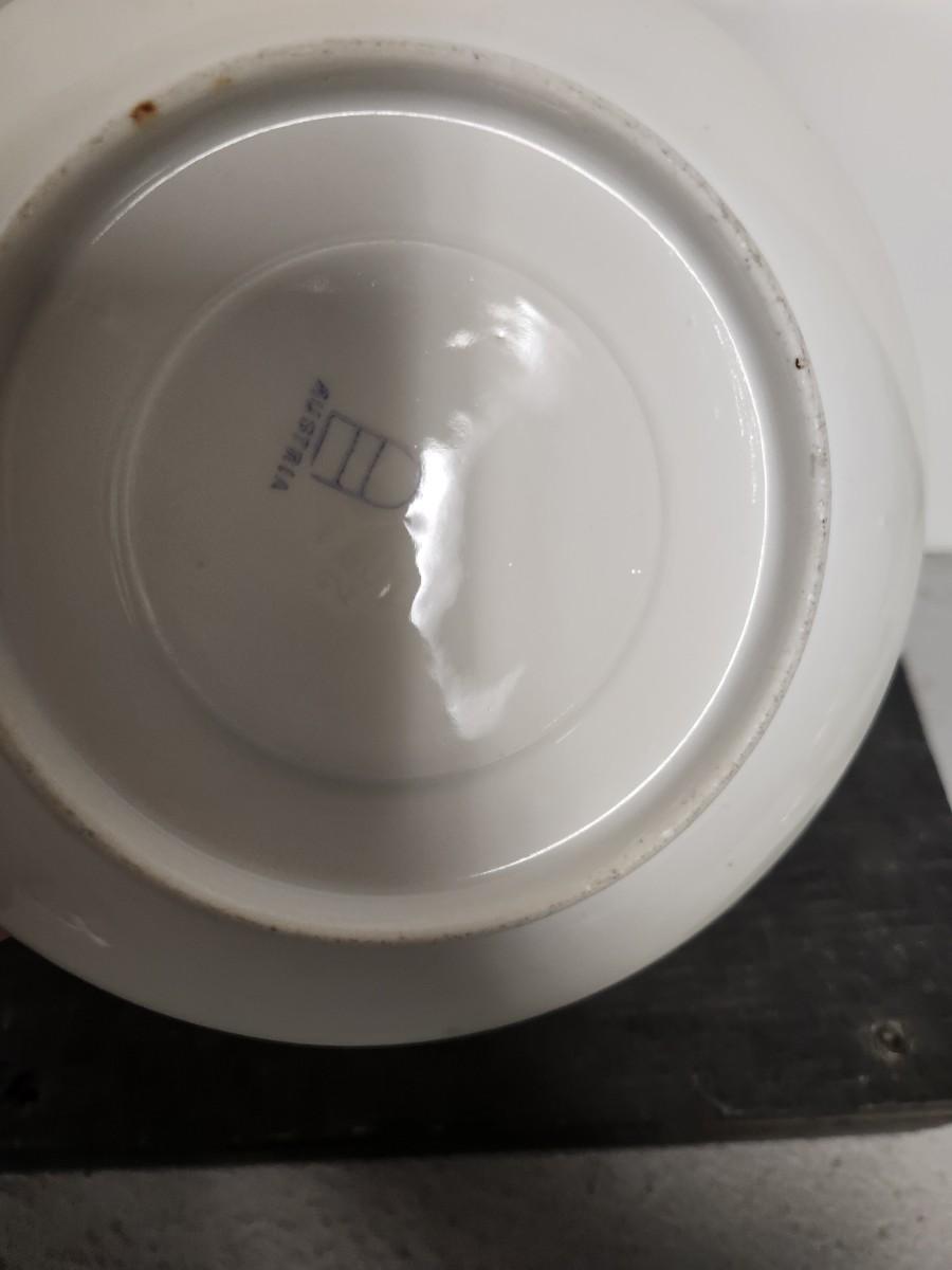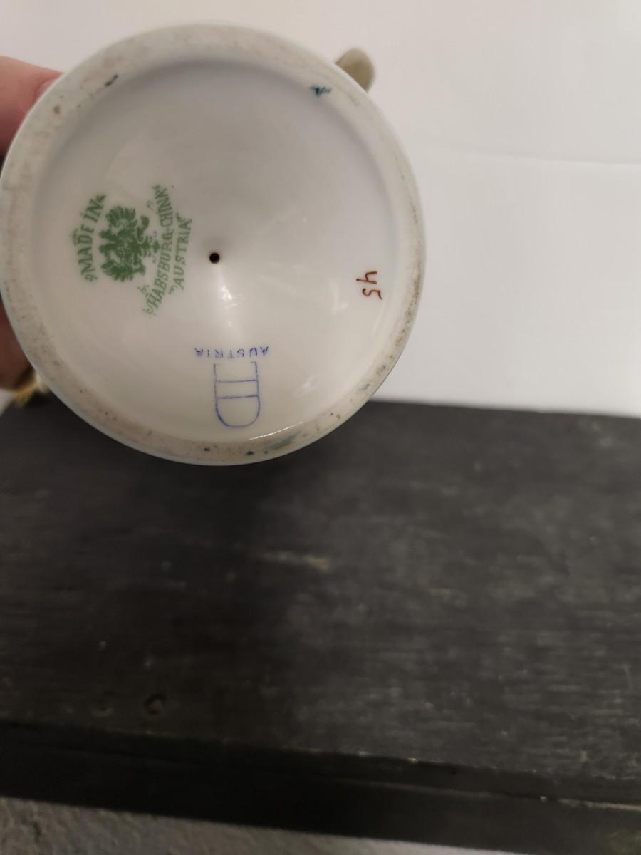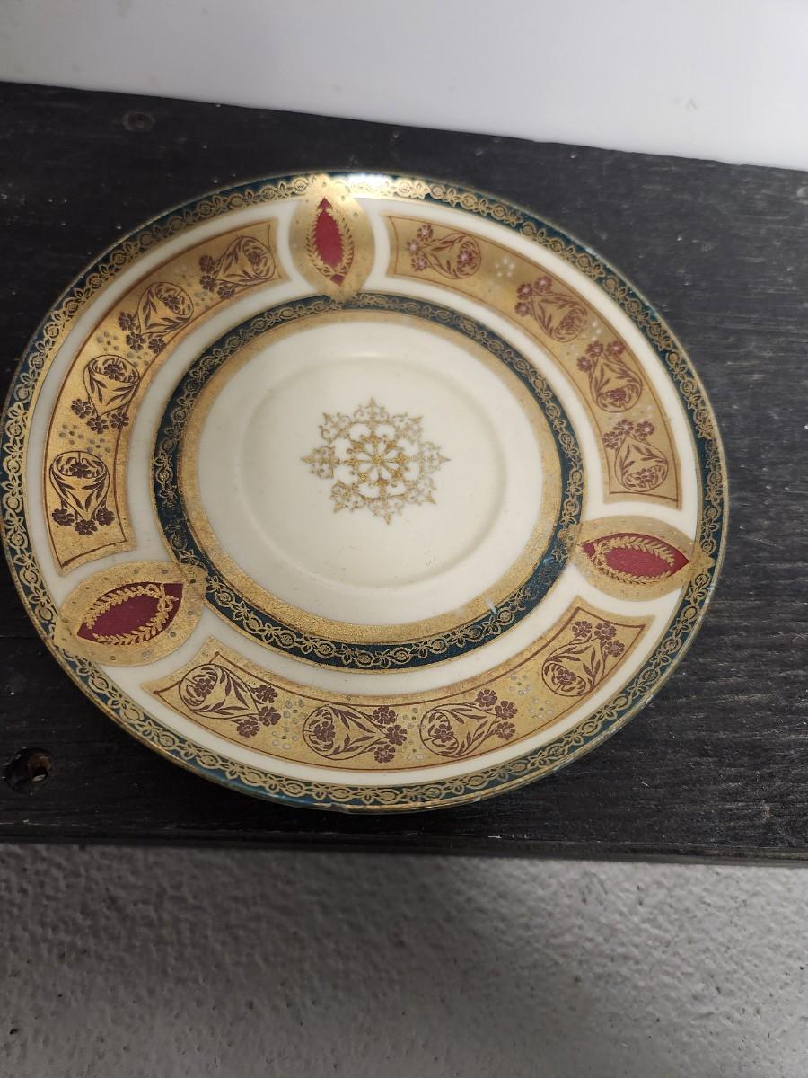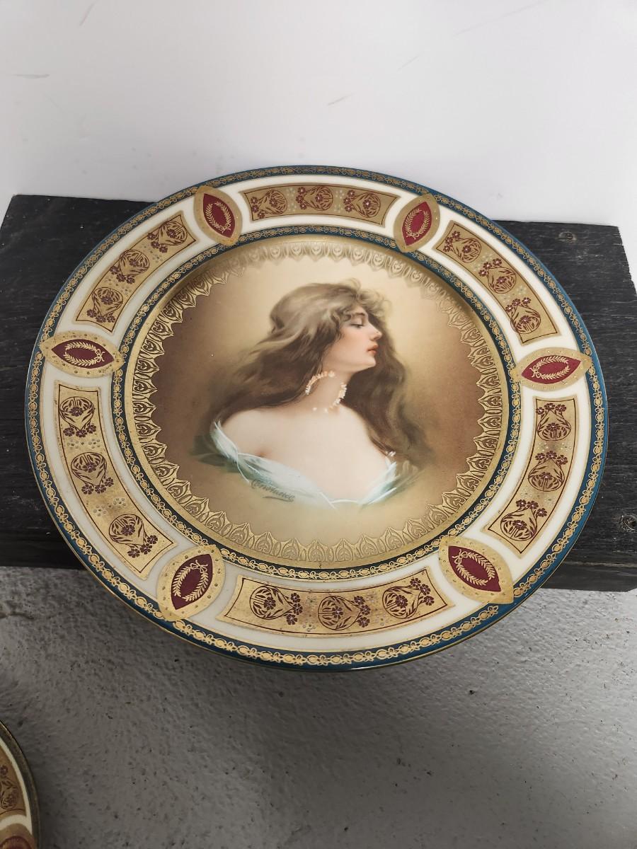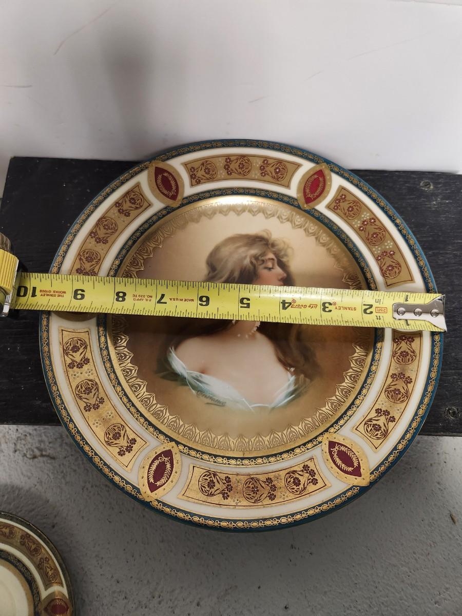 Gorgeous antique portrait chocolate pot, under plate and serving plate.