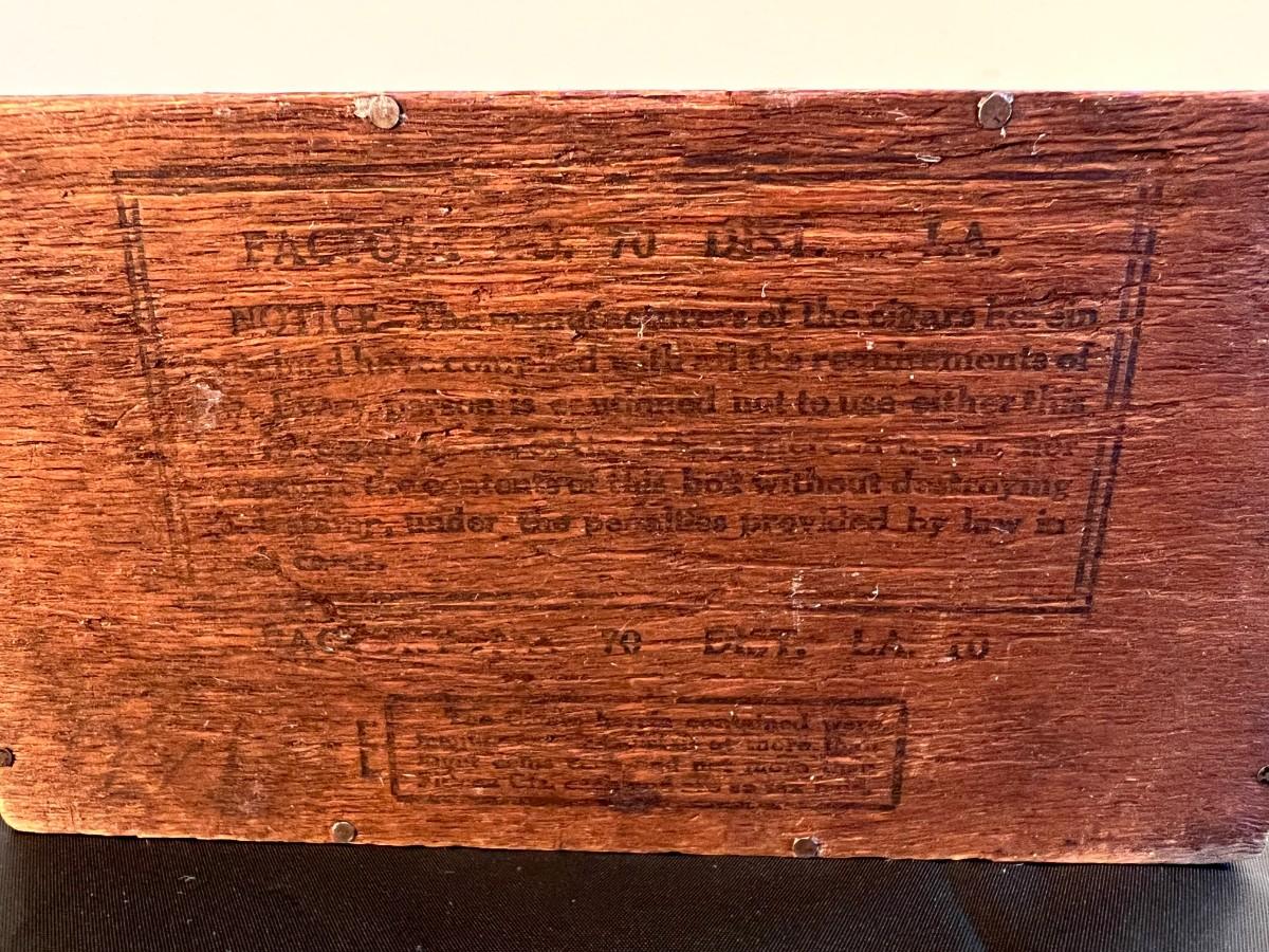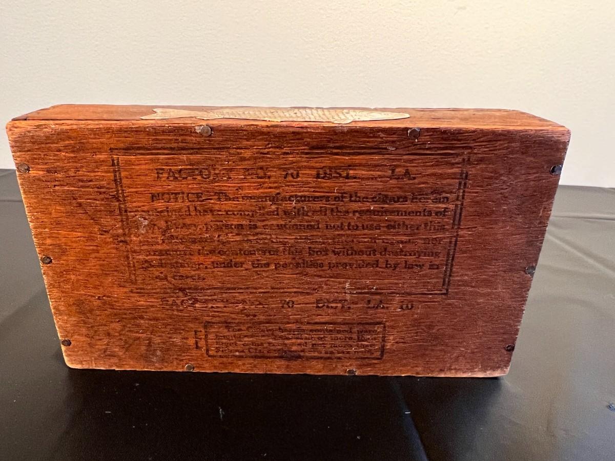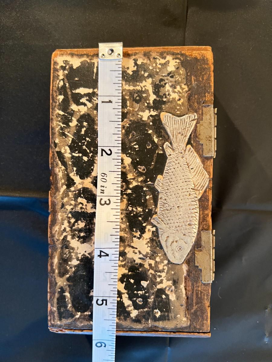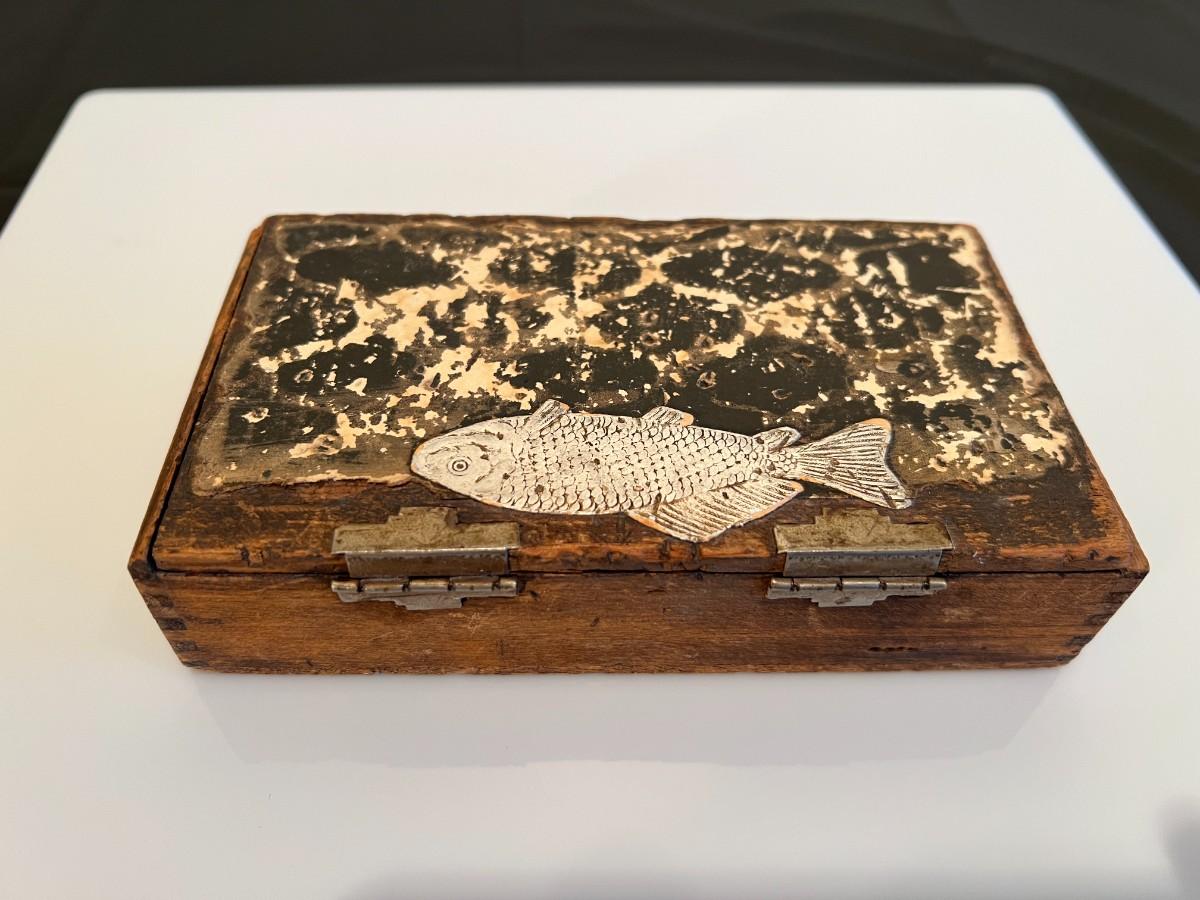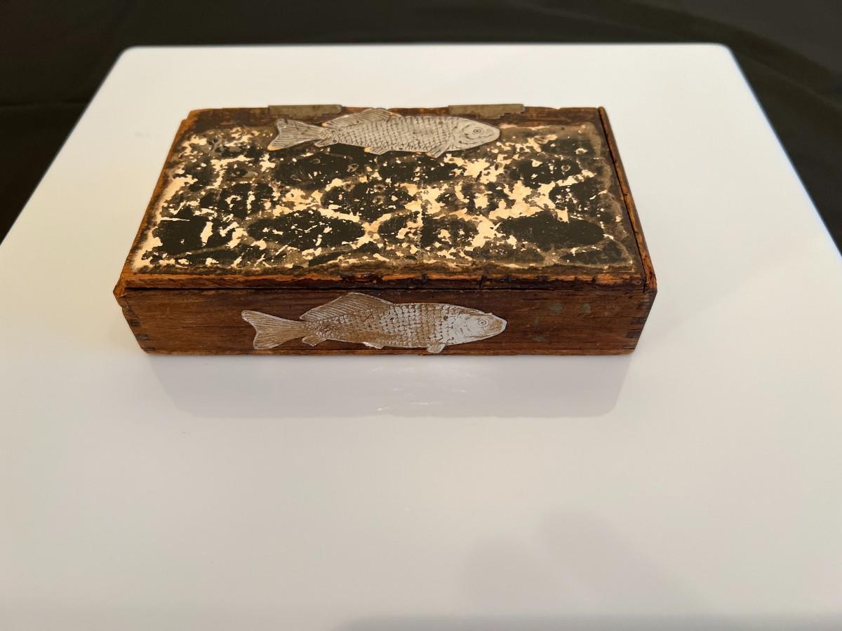 Antique Cigar Box Wood with Silver Tone Metal Fish
