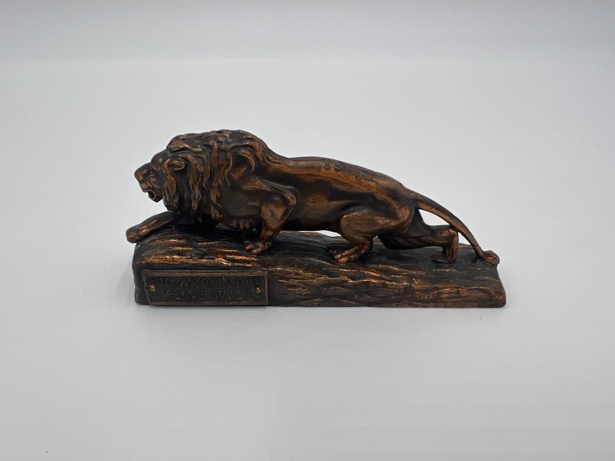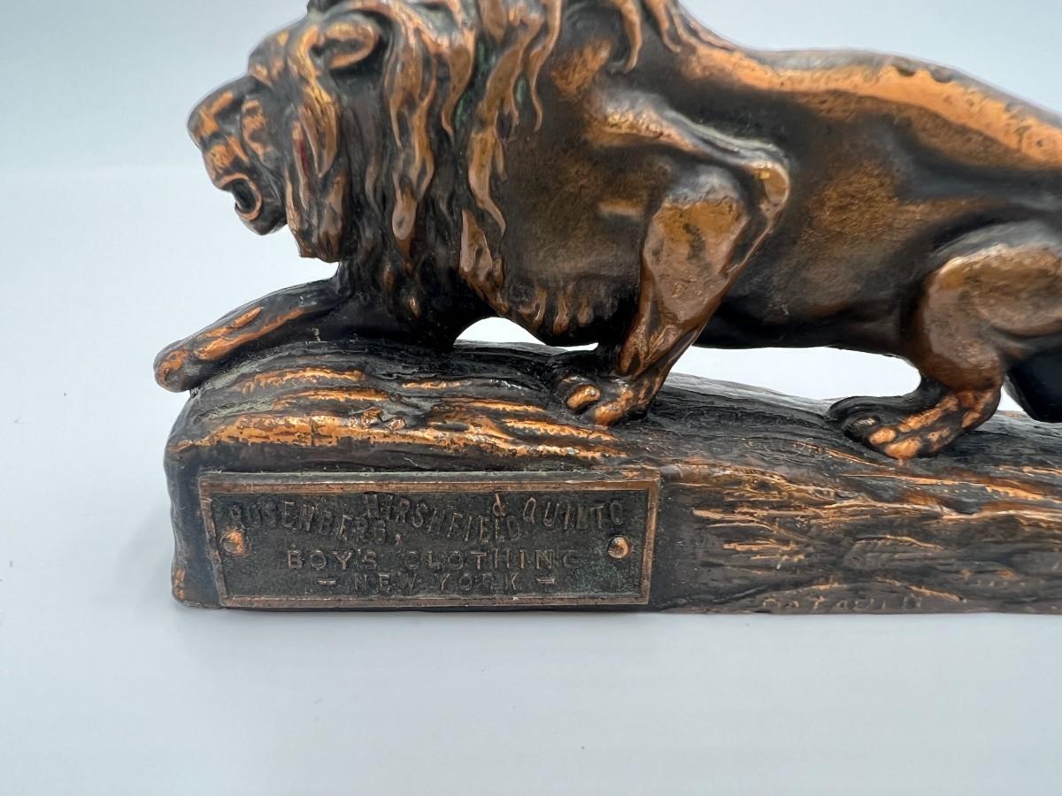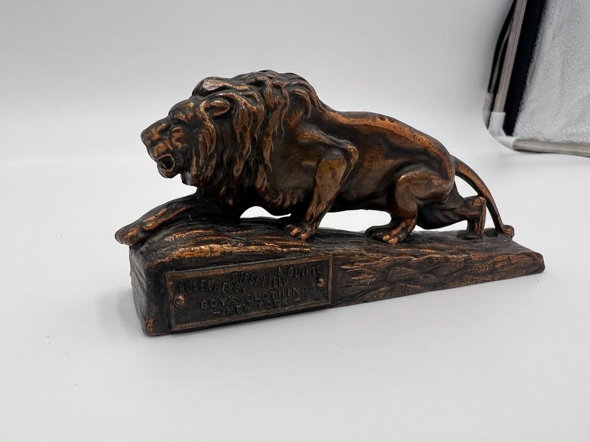 Antique Circa 1900 Bronze Lion NYC Rosenberg Boys Clothing. Rare find. Condition as shown.