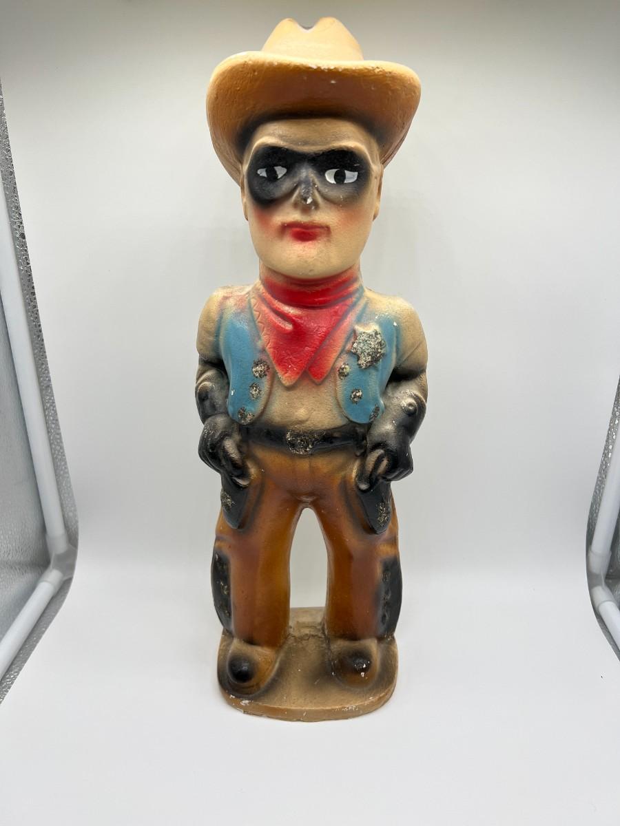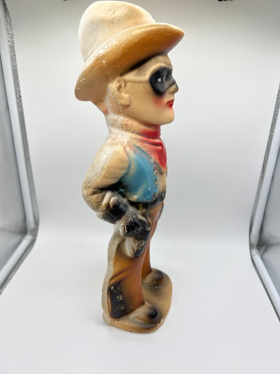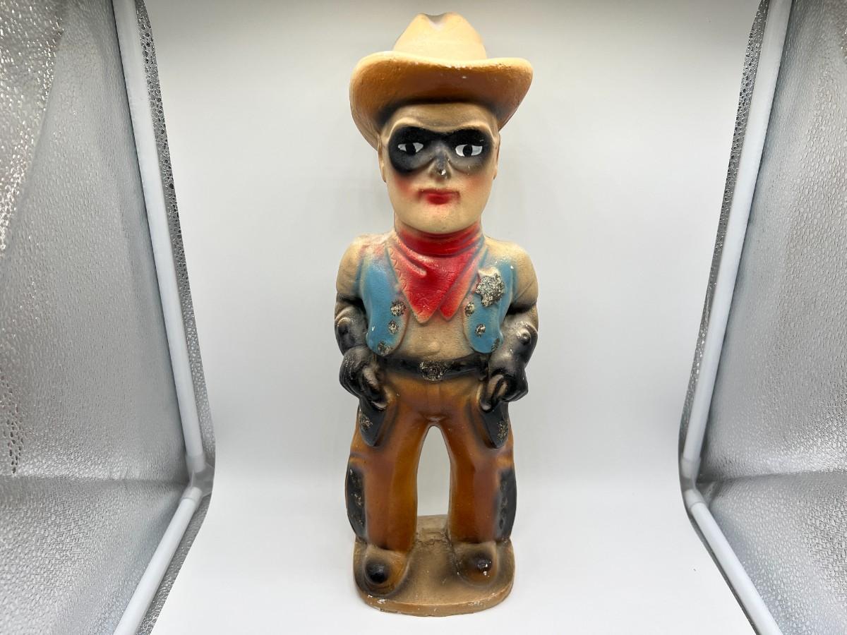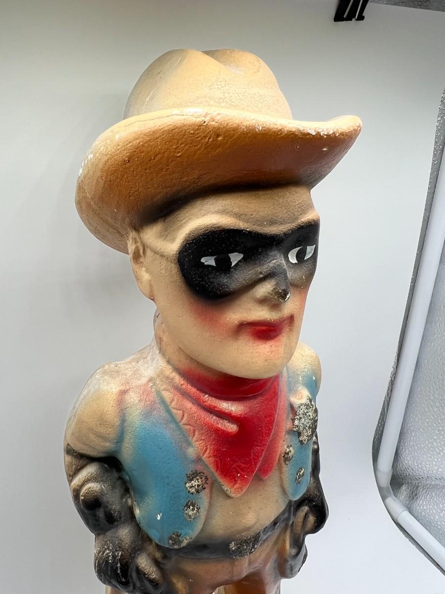 Antique Circa 1948 Chalkware Lone Ranger Cowboy Kid Statue Figurine Prize from Playland in Seattle. Included with a note that summarizes the known provenance, "This item was won at Playland in Seattle around 1948 by Dan, a resident of Rainier Valley on an outing sponsored by a local newspaper, The Seattle Star." Condition as shown.