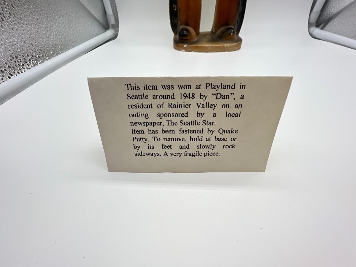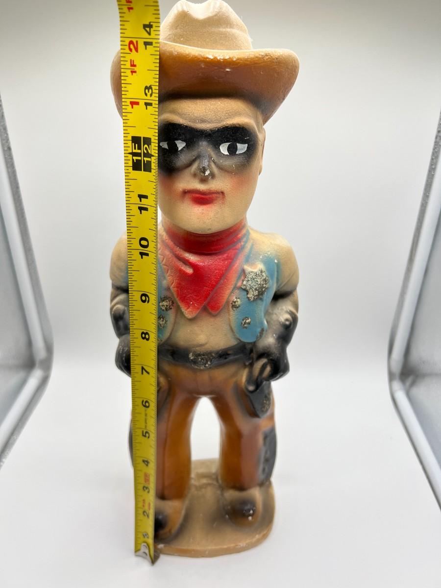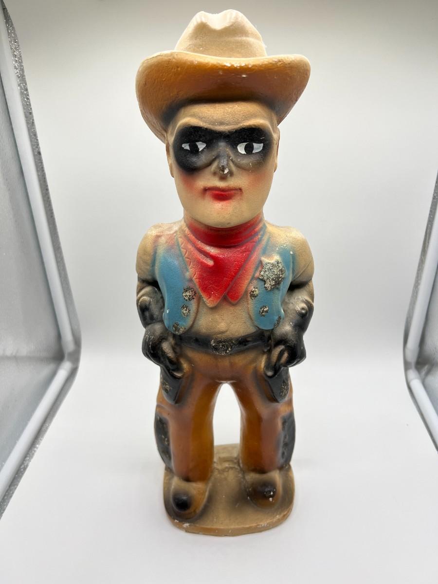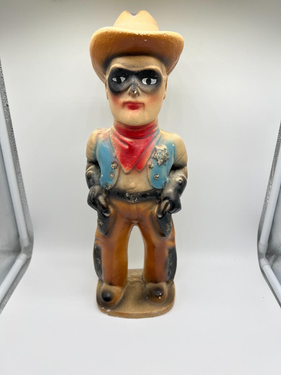 Antique Circa 1948 Chalkware Lone Ranger Cowboy Kid Statue Figurine Prize from Playland in Seattle. Included with a note that summarizes the known provenance, "This item was won at Playland in Seattle around 1948 by Dan, a resident of Rainier Valley on an outing sponsored by a local newspaper, The Seattle Star." Condition as shown.