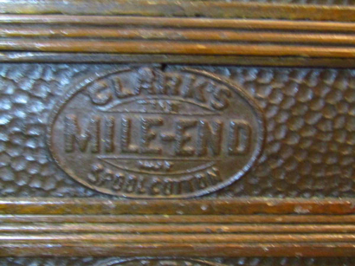 Antique Clark's Mile-End Spool Cotton Display Cabinet- 6 Drawer. In good condition. Some drawers have dividers. Measures approx 25" x 17" x 22" tall.