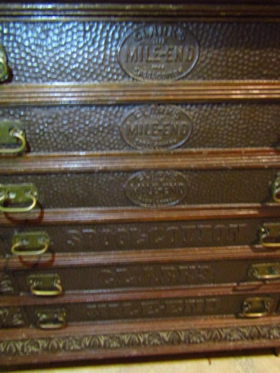 Antique Clark's Mile-End Spool Cotton Display Cabinet- 6 Drawer