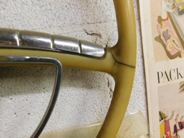 Antique Classic Packard Steering Wheel with Horn Bell 18" has some damage to hand grip age cracking may have some pitting or missing finish.