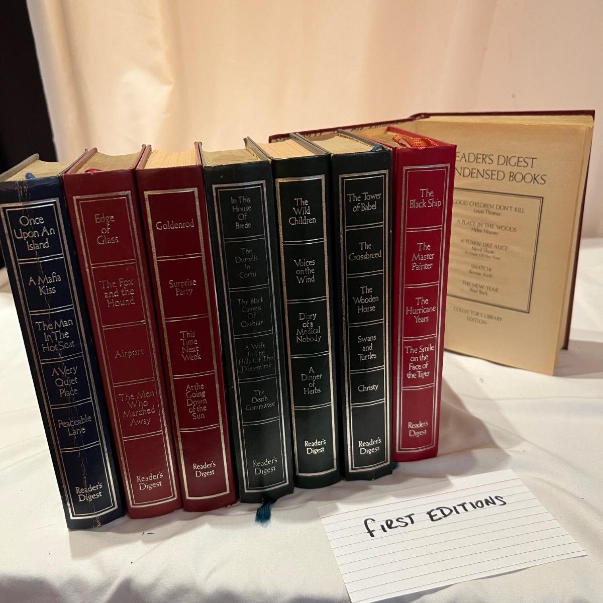 Approximately 20 books includes a set of 11 Readers Digest, many of which are first editions, see image. Also includes more classics, see images for titles, copyright pages etc.