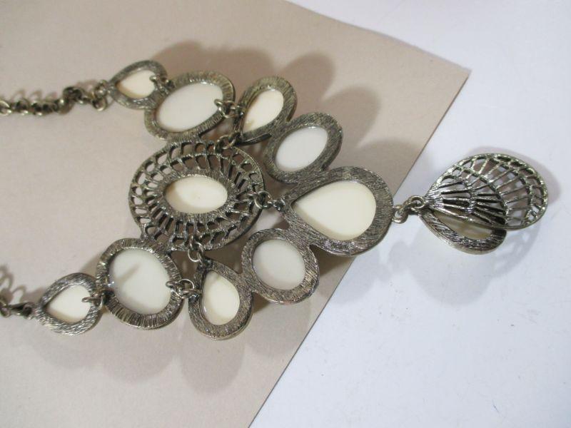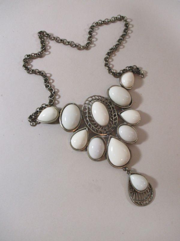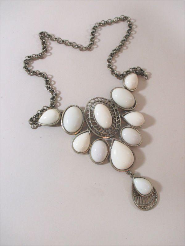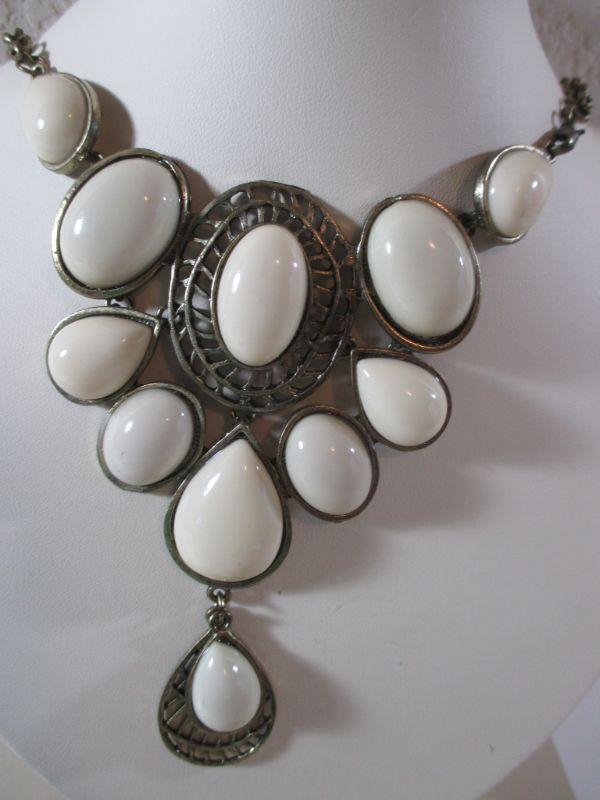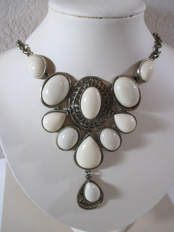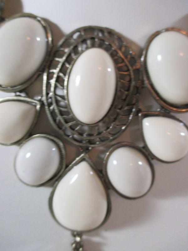 Antique Cleo Style Bib Choker/ White teardrop shape Rhinestones 9" antique style clasp