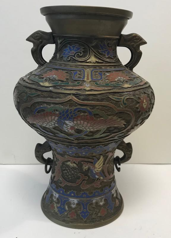Description: Antique Cloisonné Vase w/Handle. Measurement approximate: 12 H. Material: Cloisonne Metal. Shipping Cost: $27 Excluding California, Alaska & Hawaii. This Item has a reserve price.