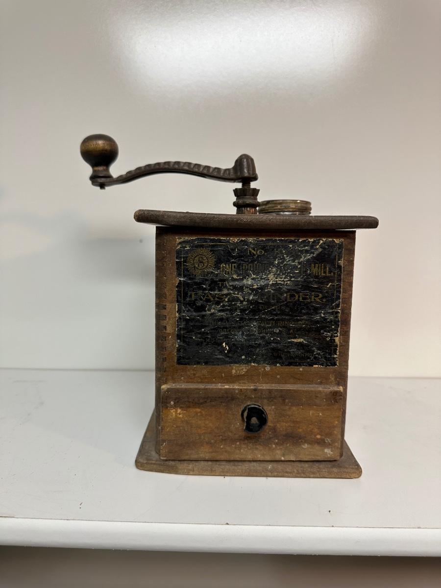 ANTIQUE COFFEE GRINDER AND A HAND MIXER