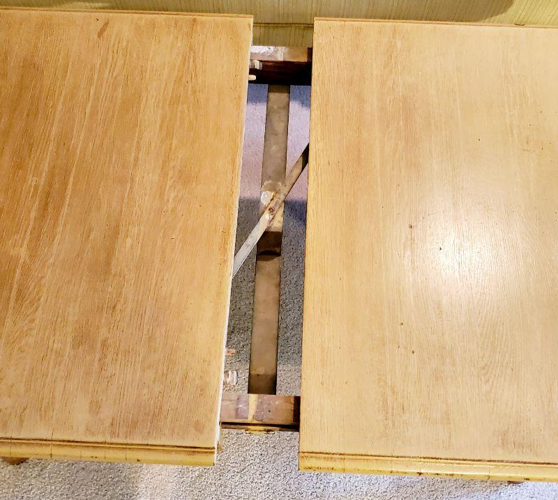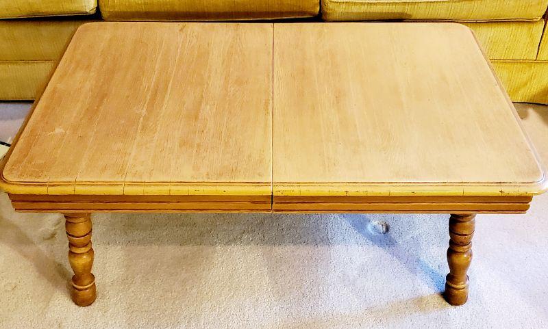 This coffee table i believe used to be an actual table ( not sure though), it does slide apart but there are no leaves for it.
