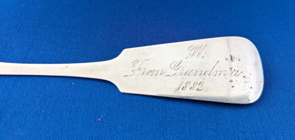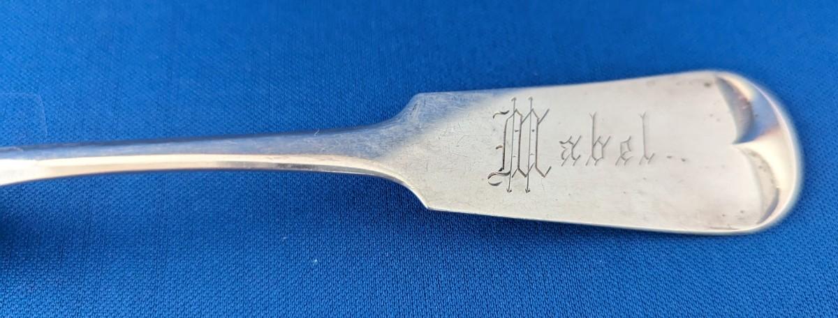 Antique coin silver spoon "Mabel" From Grandma 1882