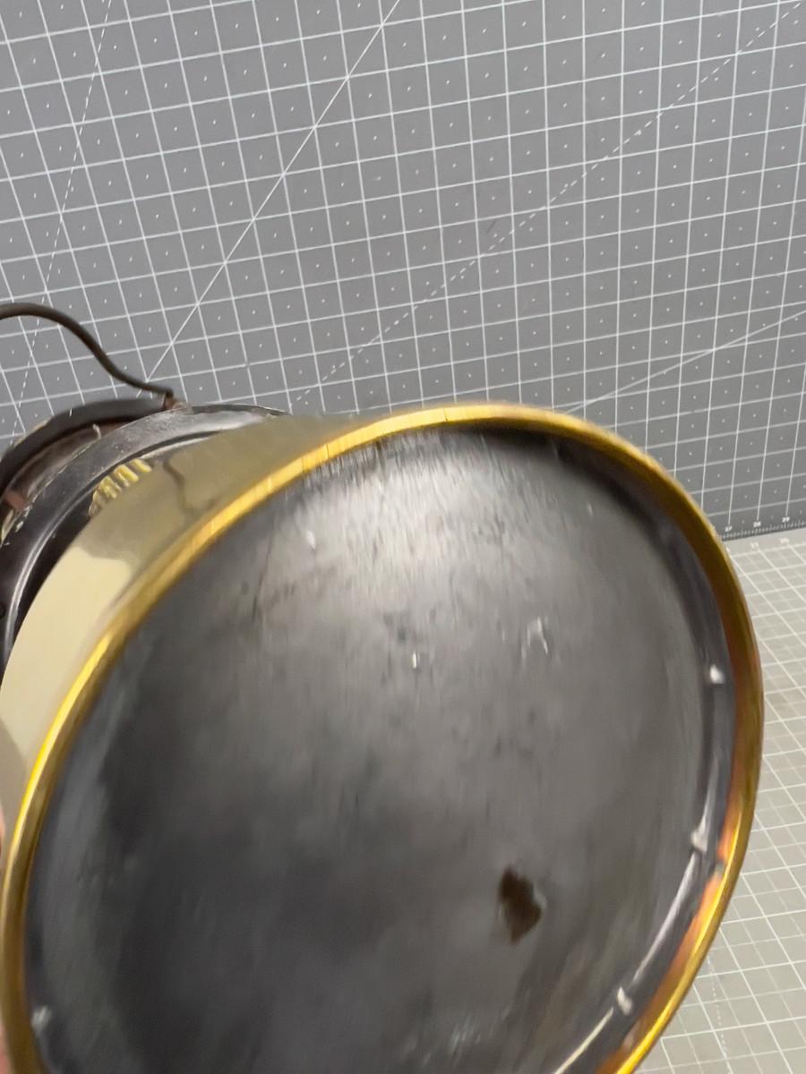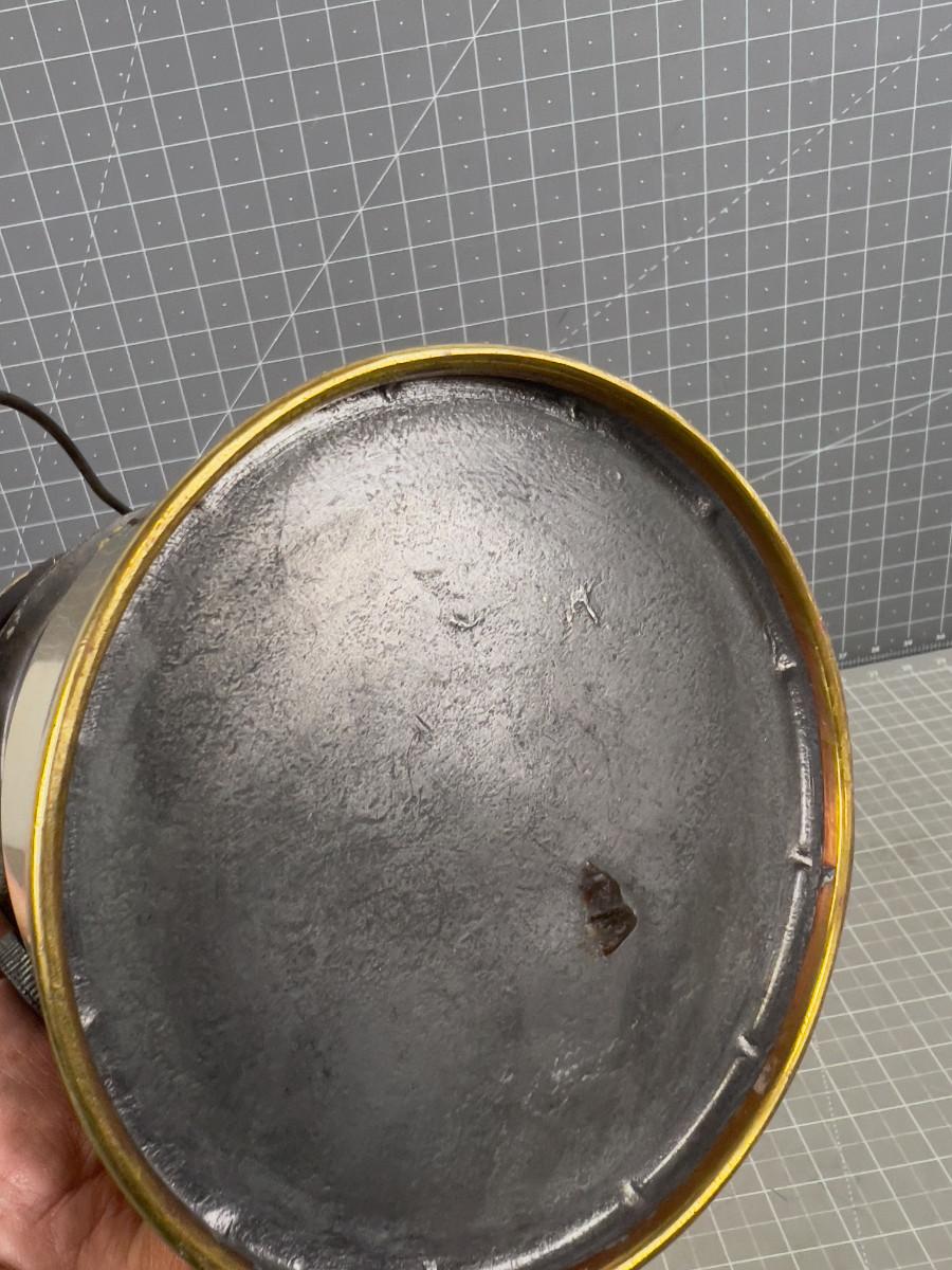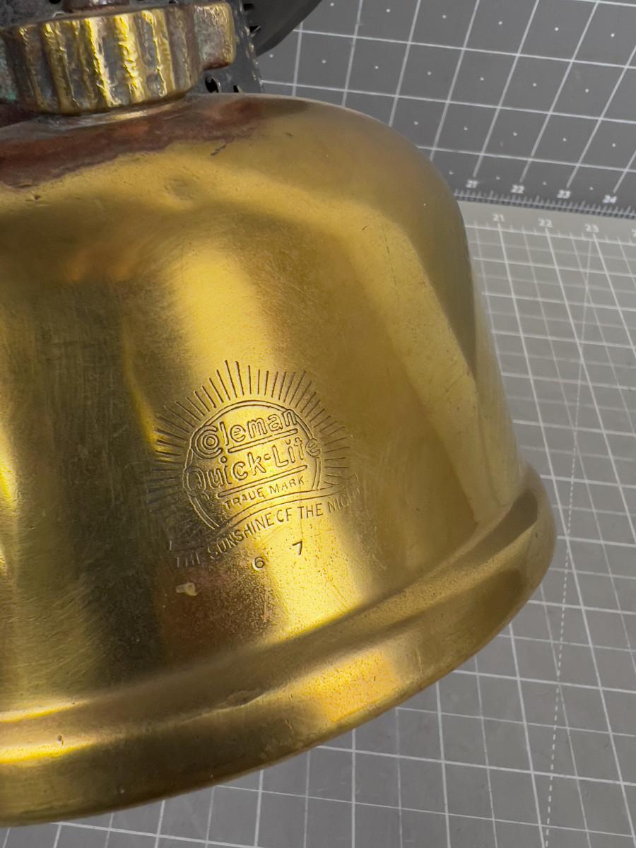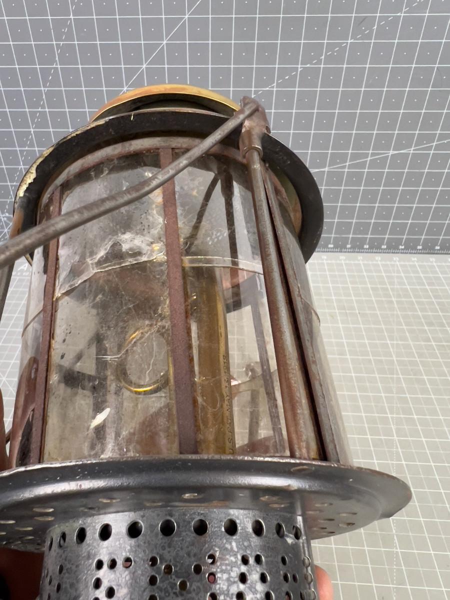 Awesome piece!!! Polished brass manufactured some time in the 1920's most likely, not sure if it’s the old mica lantern glass.