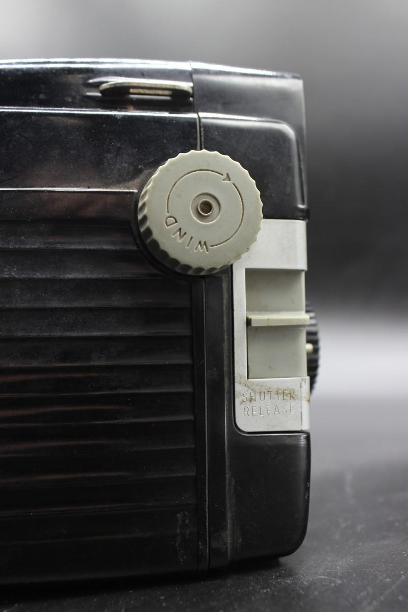 Antique Collectible Kodak Brownie Bull's Eye Camera, there is no significant damage to the body of the camera and is in good condition. Has not been tested with film, the shutter button, winding mechanisms, and viewfinder all work smoothly. Check pictures for more details and for sizing.