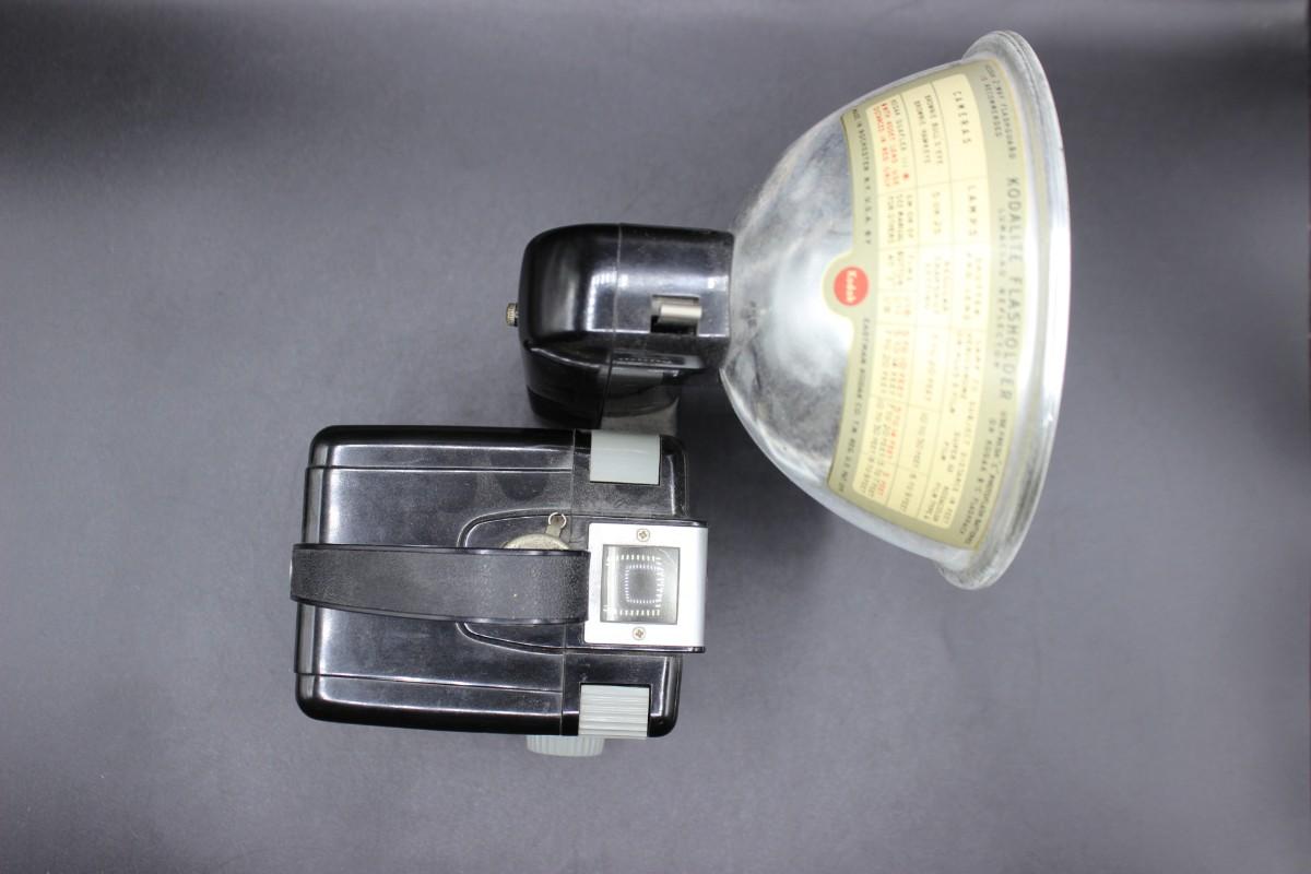 Antique Collectible Kodak Brownie Hawkeye Hash Model with Kodalite Flash Holder, there is no significant damage to the camera body and is in good condition. The shutter buttons and mechanism wheels all work smoothly, but has not been tested with film. The Kodalite Flash Holder has been tested with a one time use bulb and works perfectly, check pictures for more details and for sizing.