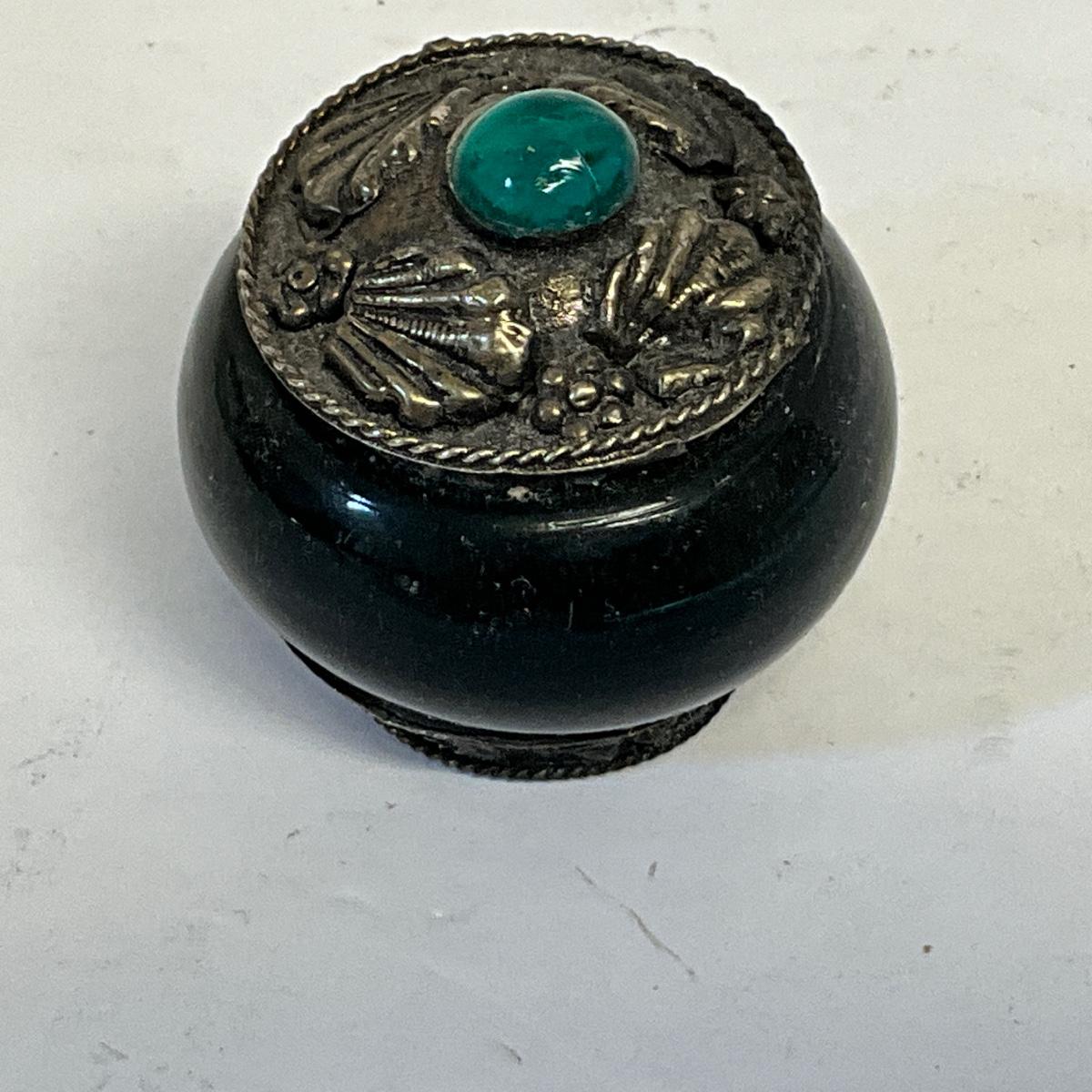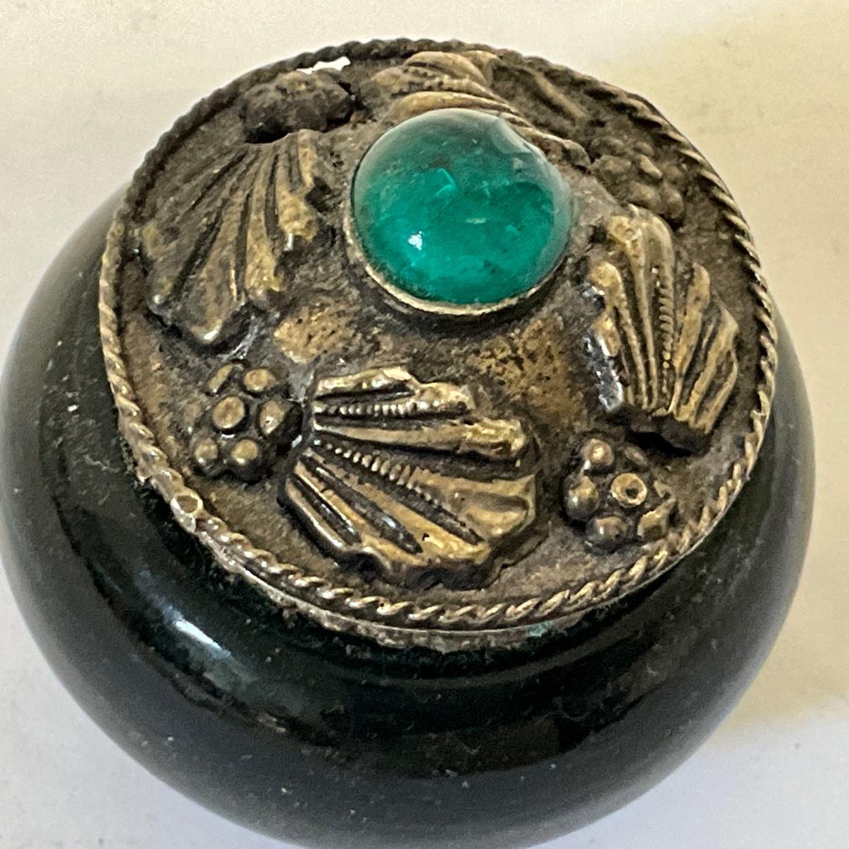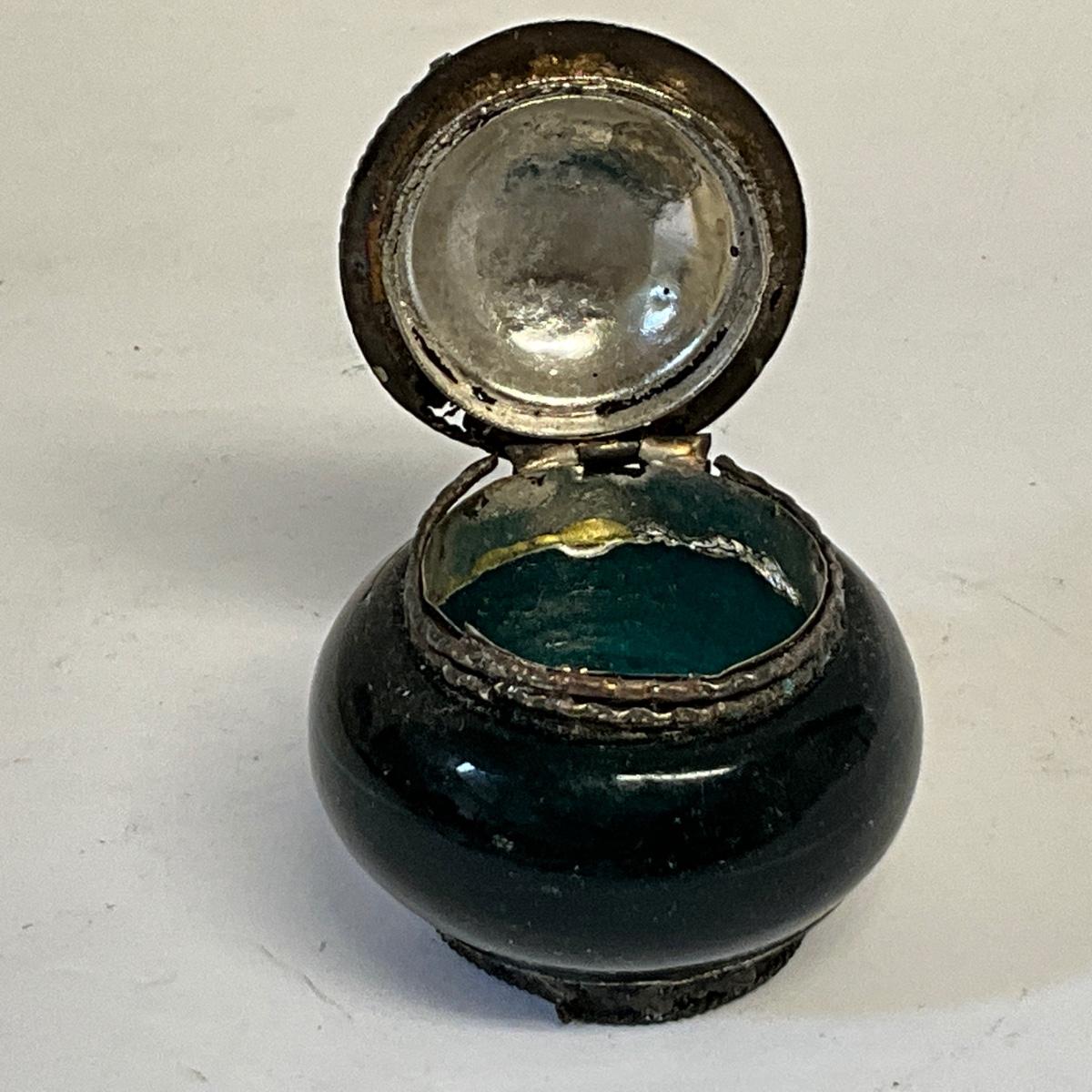 Antique Collectible, sterling silver lidded trinket box, sterling oval frame, brass frame, green glass trinket box with sterling lid as pictured