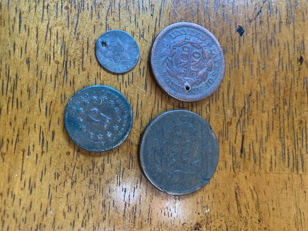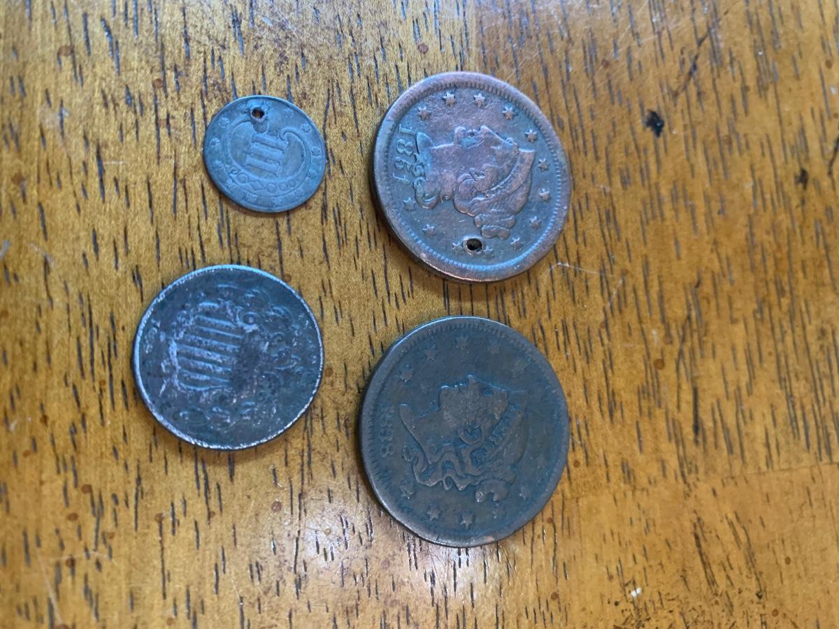 Antique Colonial Coins Lot 1838 & 1851 Large Cent 1869 Nickel 1851 3 Cent Silver Coin