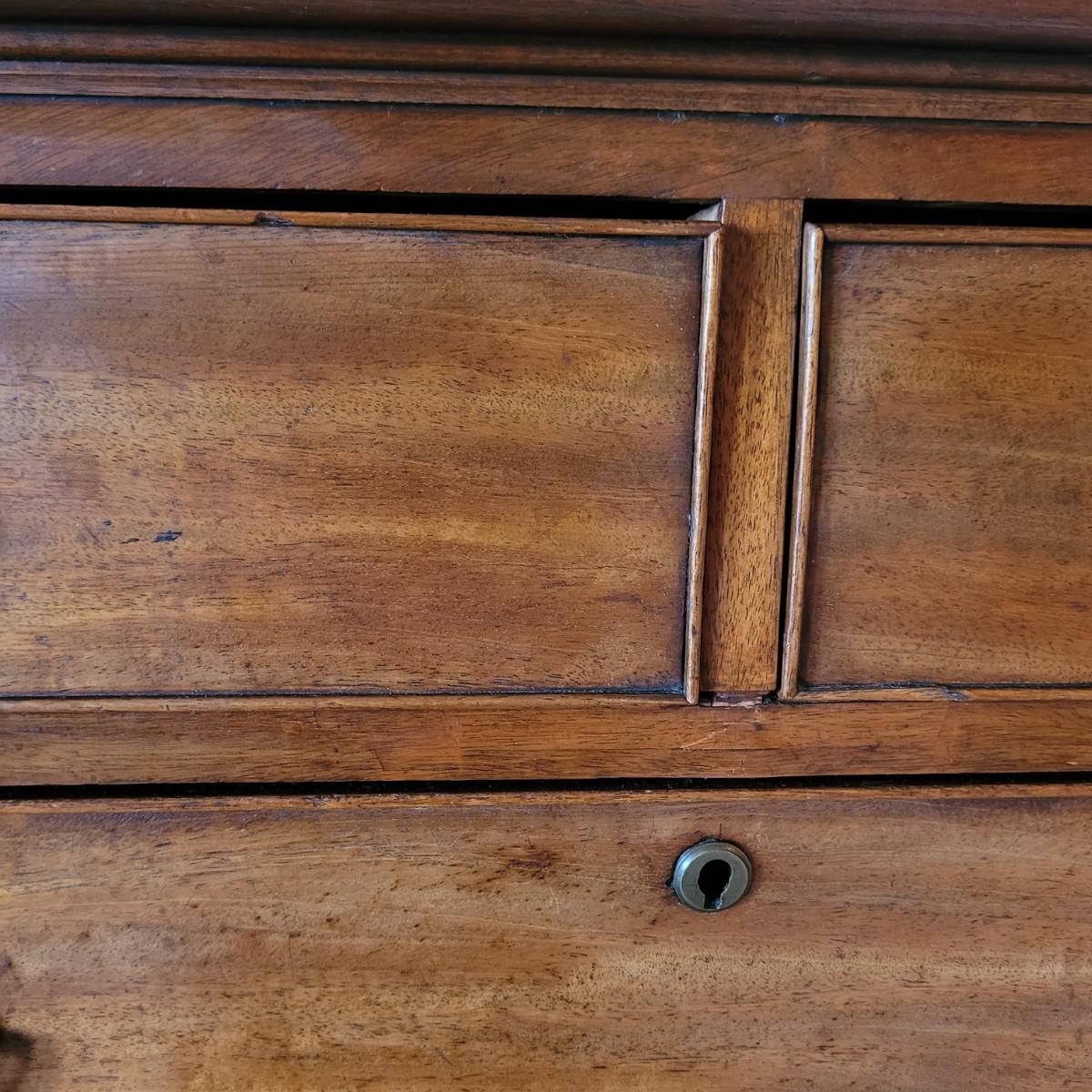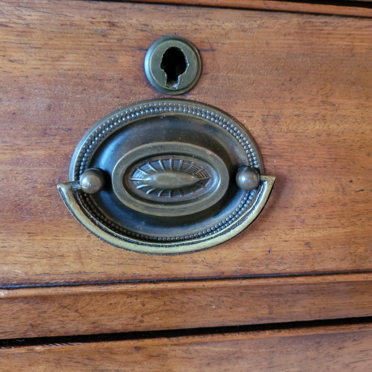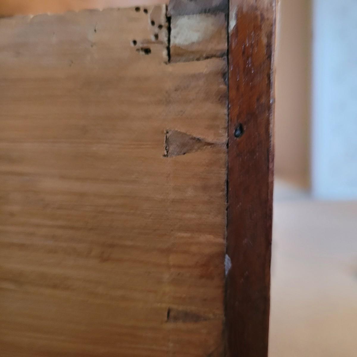 This stunning antique wooden five drawer chest has dovetail joint drawers and traditional style hardware. Measures approximately 37” x 19.5” x 38”H. Local pickup only. Winning bidder must bring assistance to help move and load this item due to its weight and size. Dresser is located up one flight of stairs.