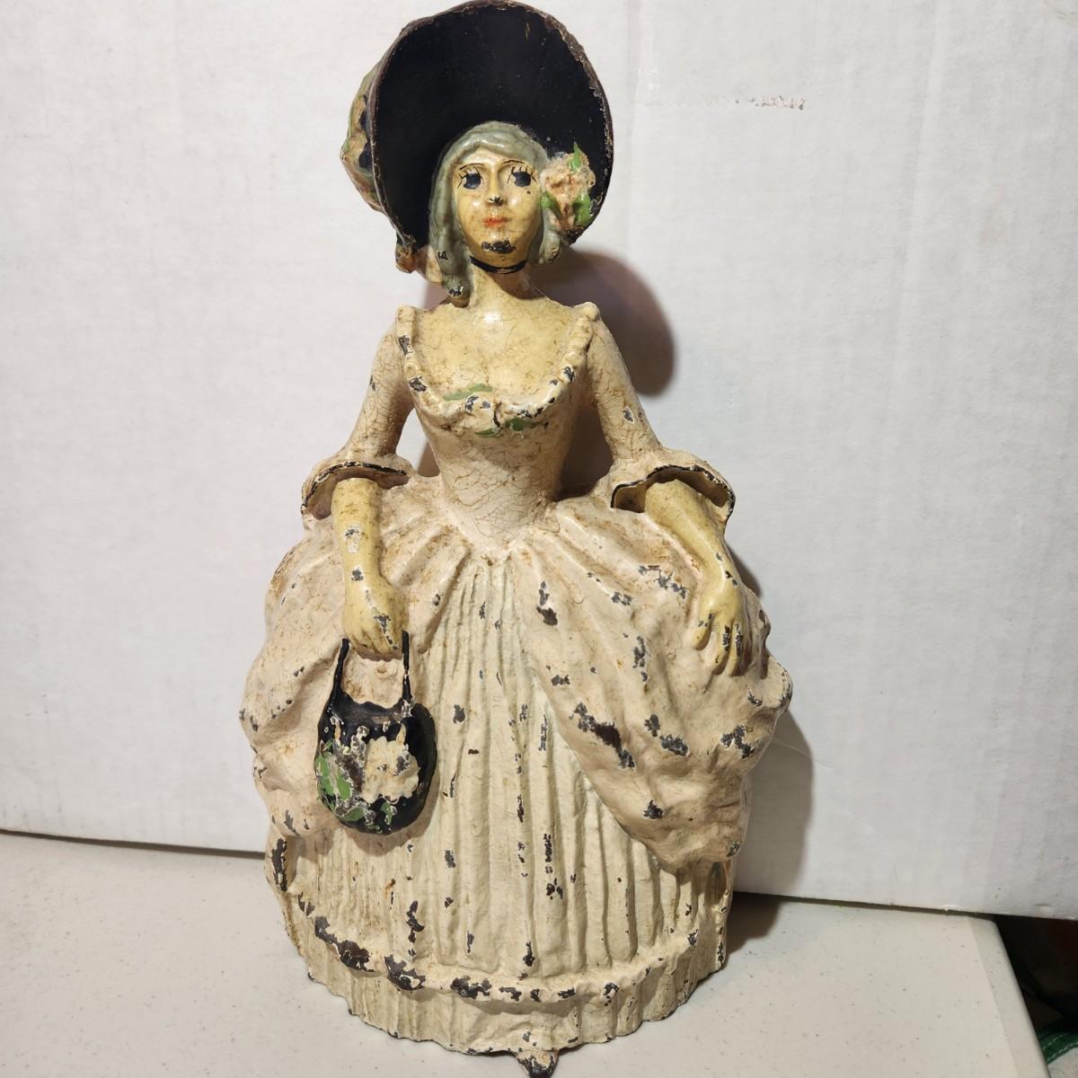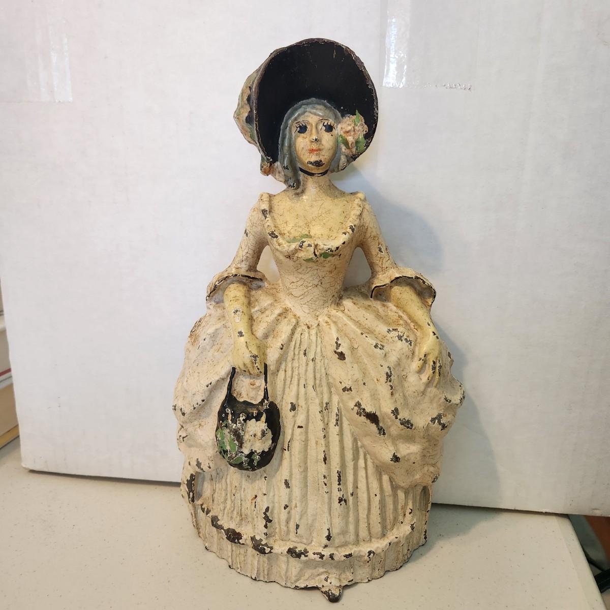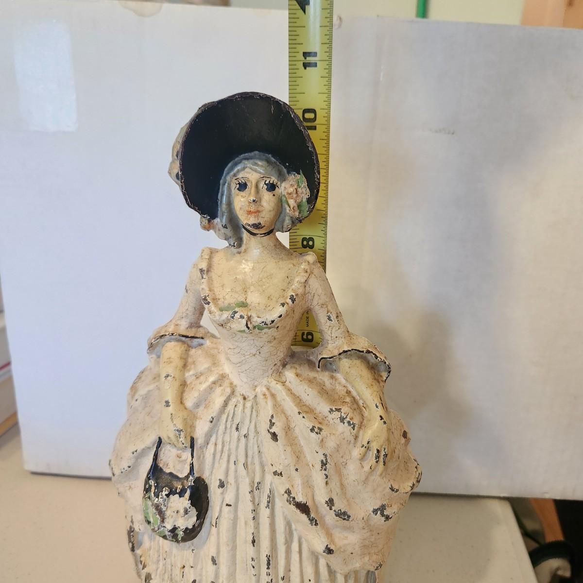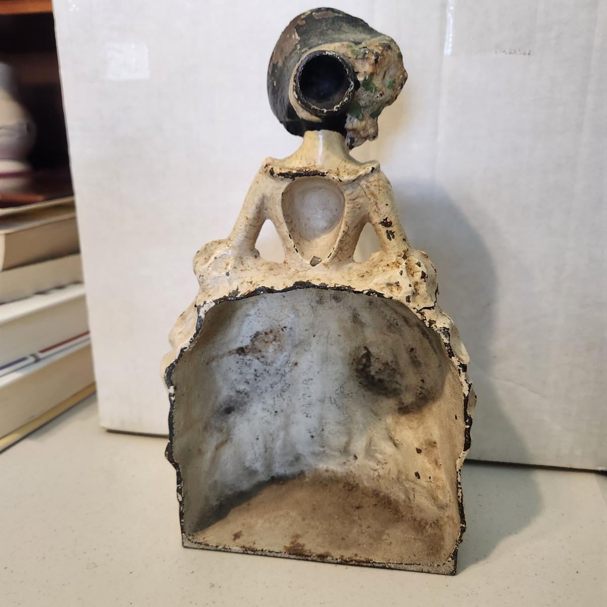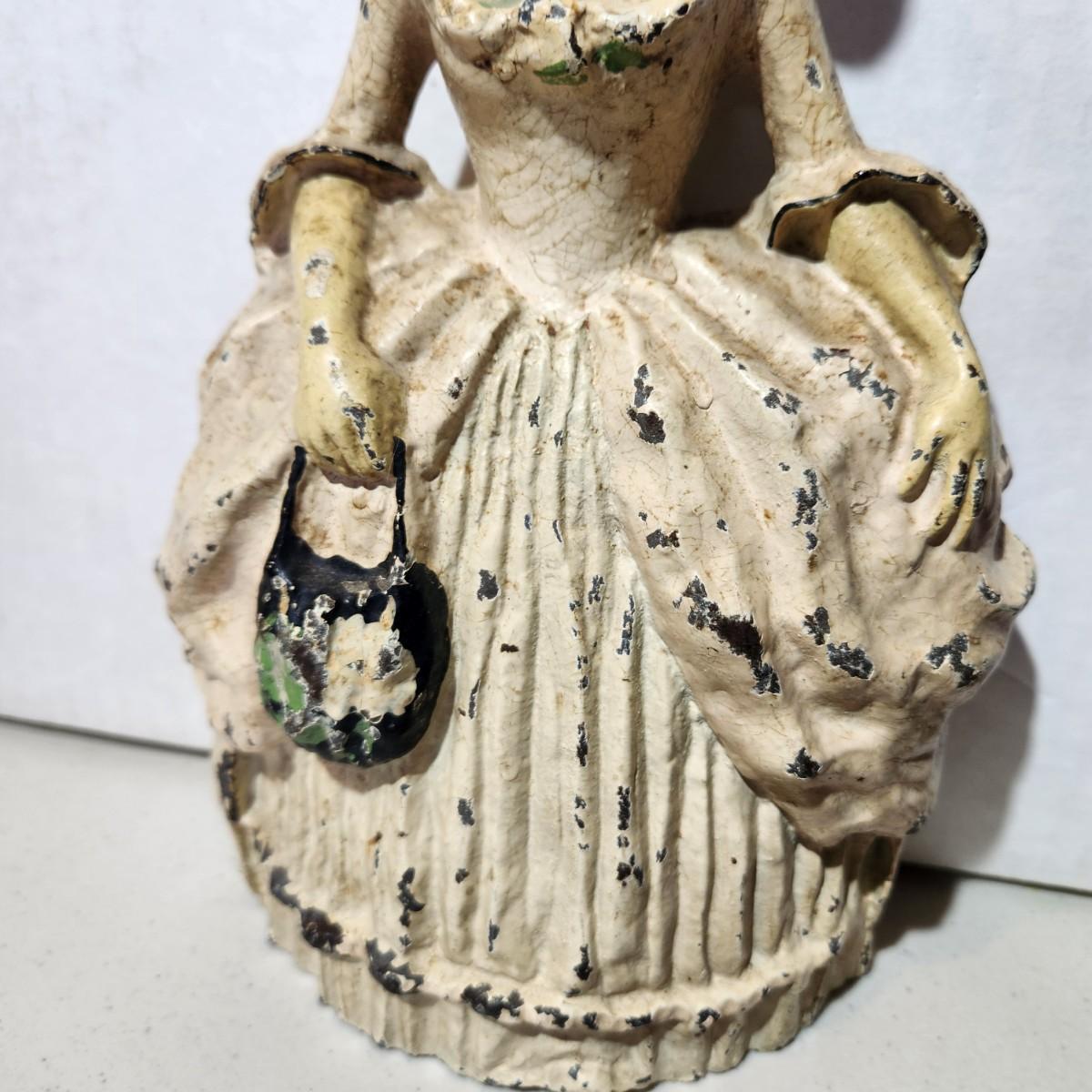 Antique Colonial Woman Heavy Cast Iron Door Stop Bookend PAT PEND