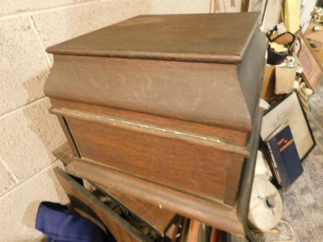 Antique Columbia Grafanola American Graphophone Co. Oak Wood Box Turntable. Will crank and turn. Not sure if it plays