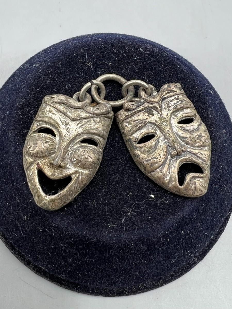 Antique Comedy & Tragedy Masks Linked Metal Charm