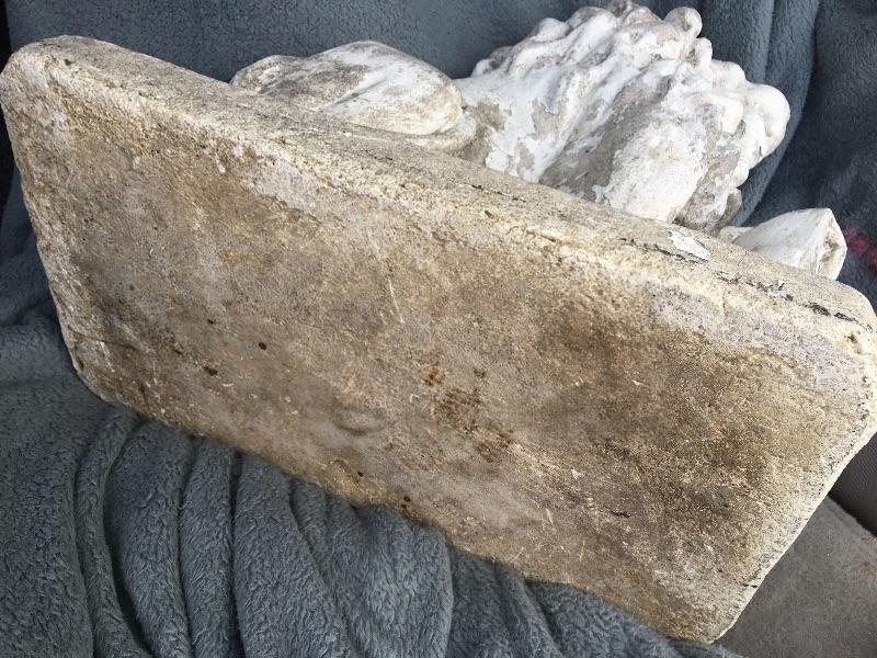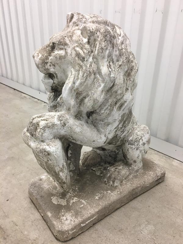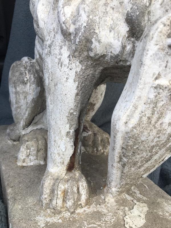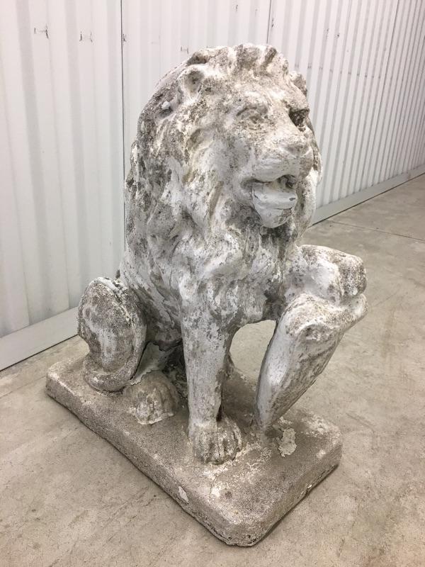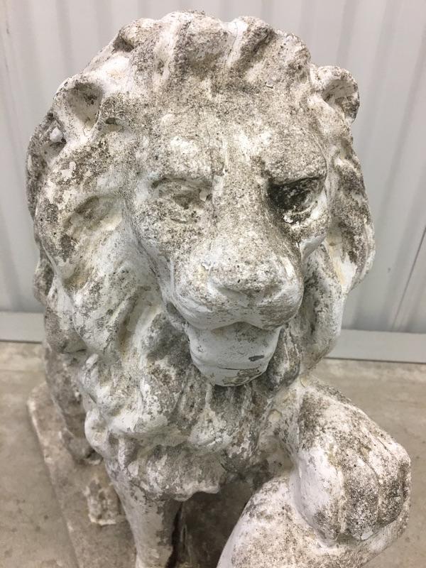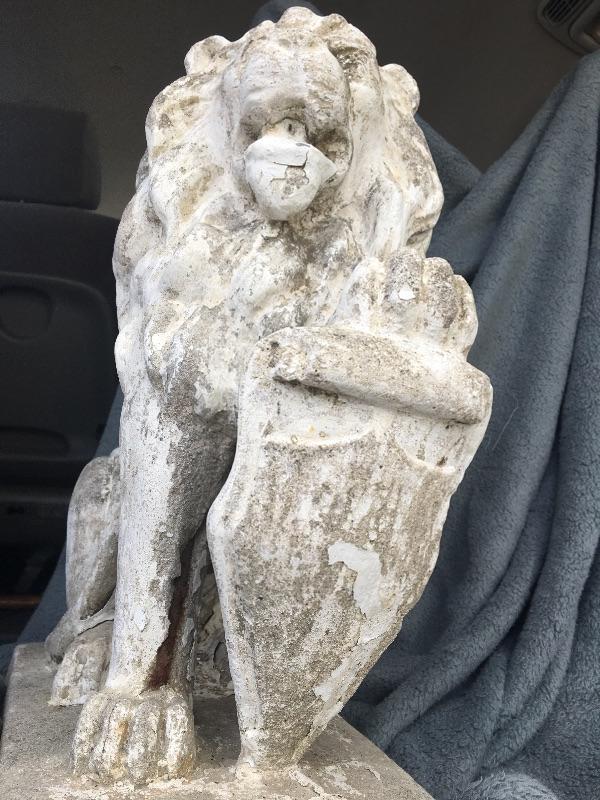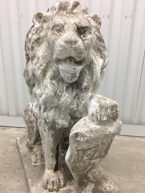 Antique Concrete Lion Statue Great Weathered Patina Shield Solid Heavy