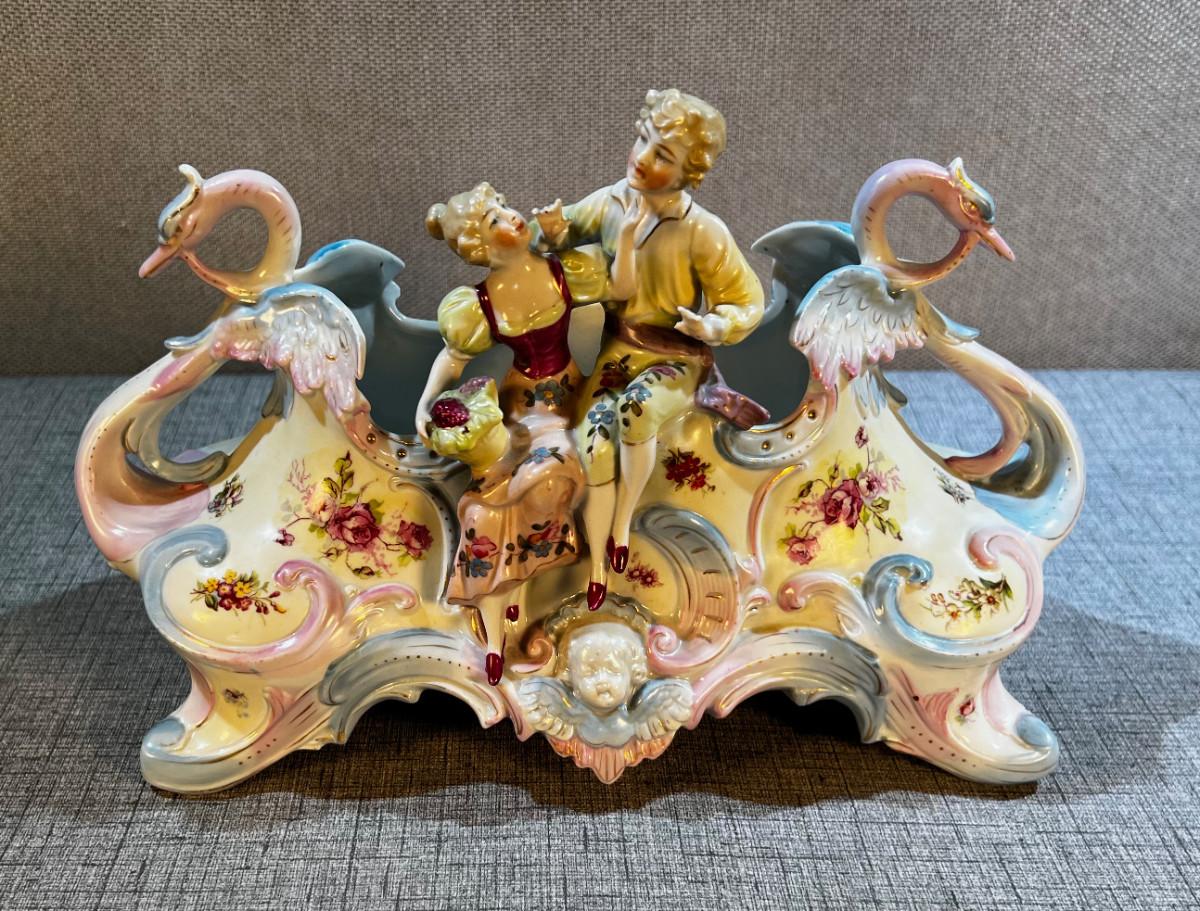 Antique Conte & Boehme Porcelain Dish with Birds and Lovers