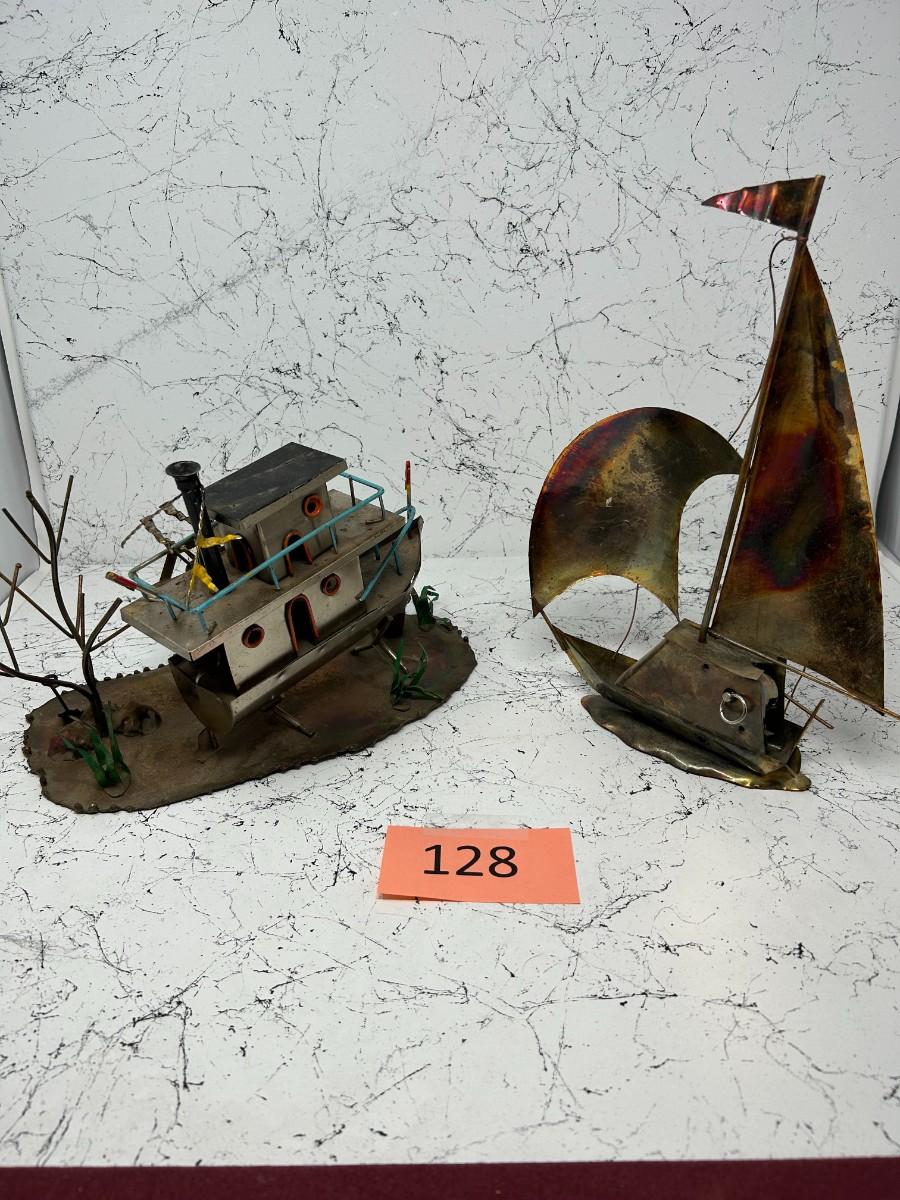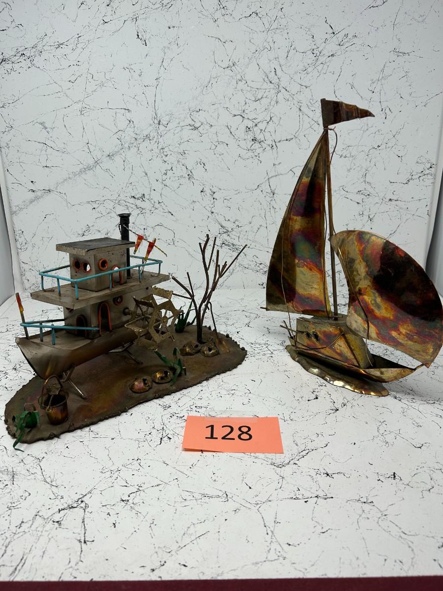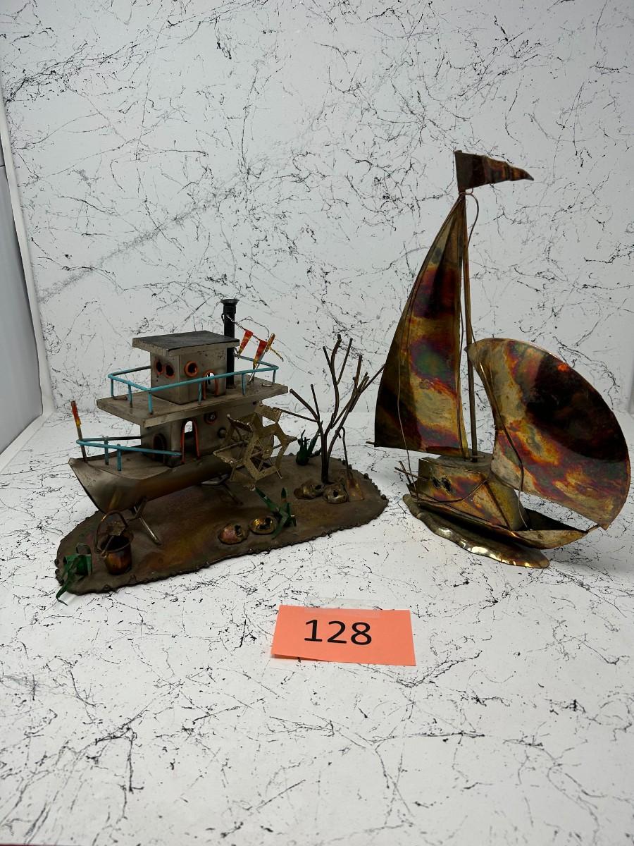 Nautical Antique cooper music boxes, steamboat, sailboat