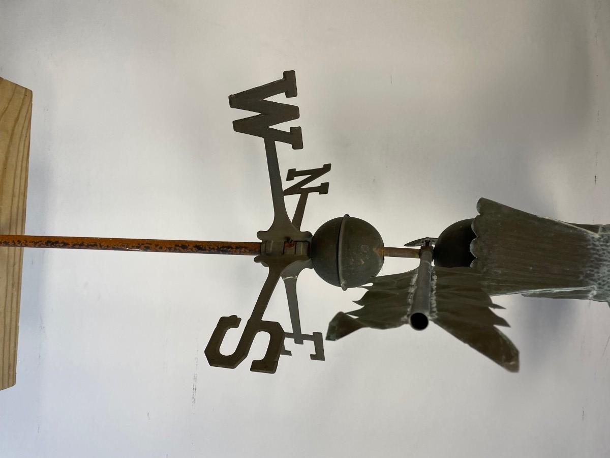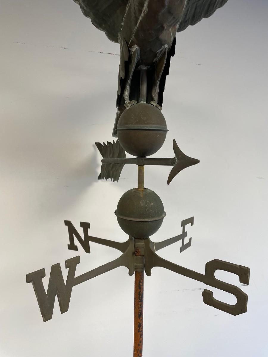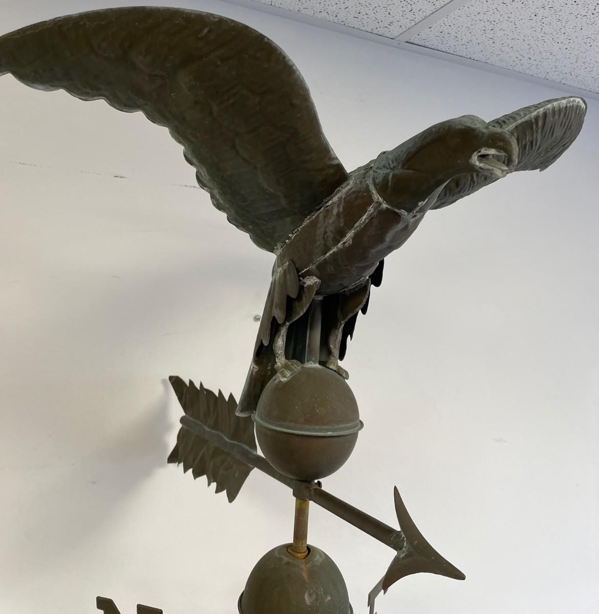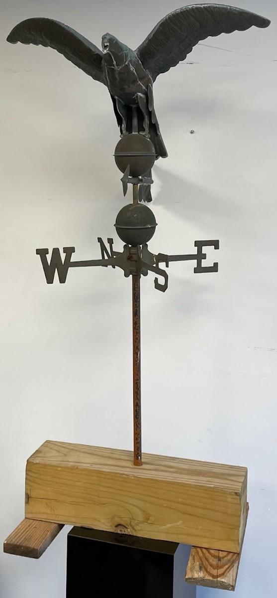 Description: Antique Copper American Eagle Weathervane; Material: Copper; Measurement approximate: 42 H x 24 W Inches; Condition: Good