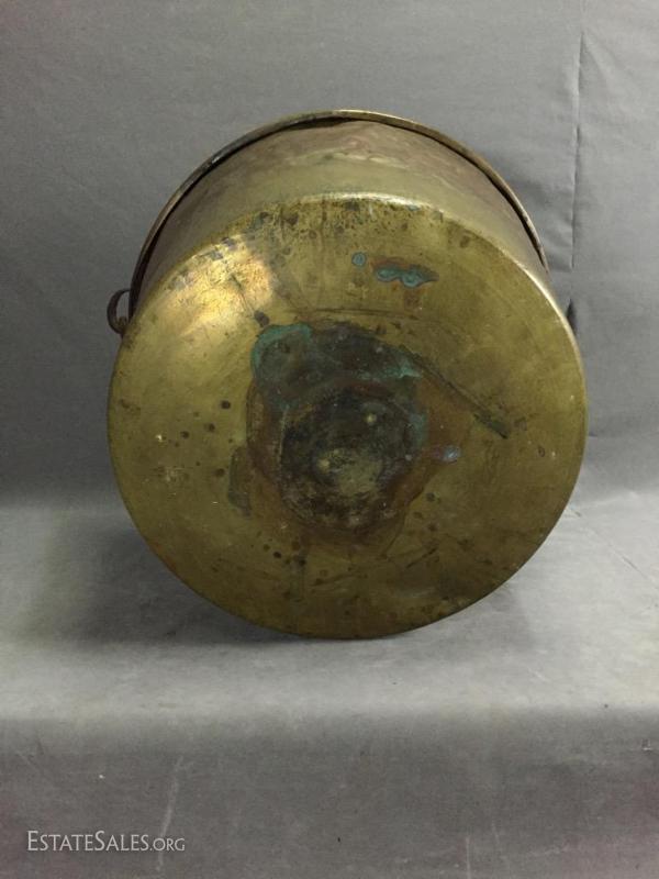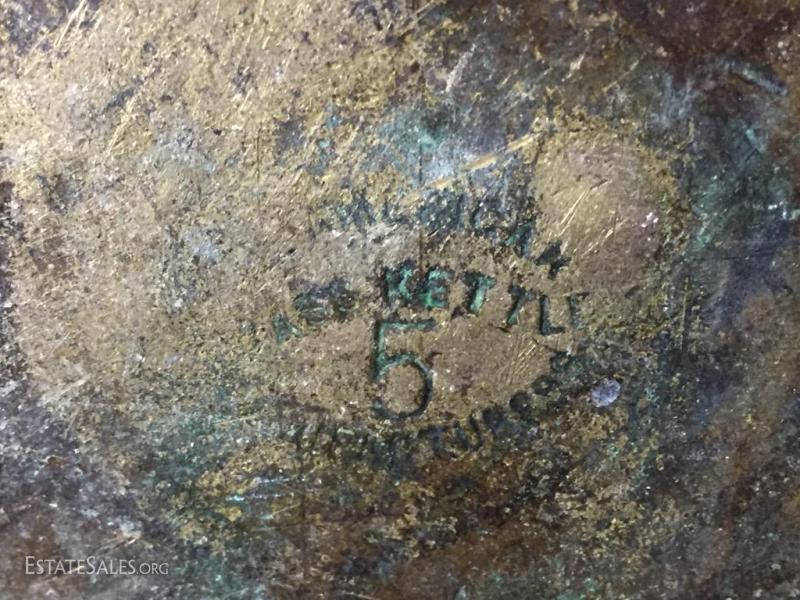 w/ hand-wrought iron handle, marked on bottom. 14" tall (without handle), 25" tall (including handle).