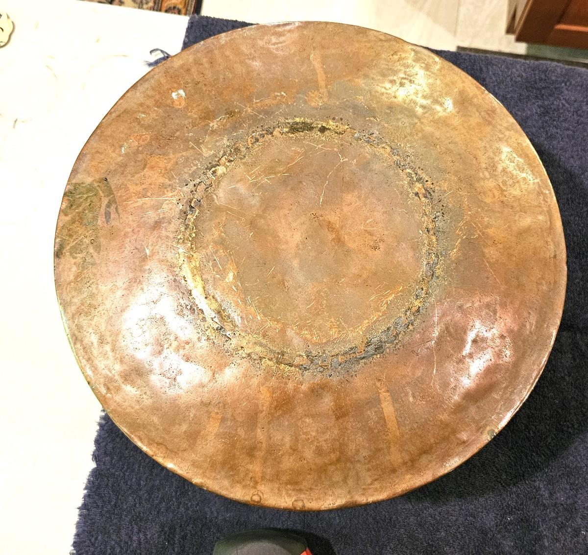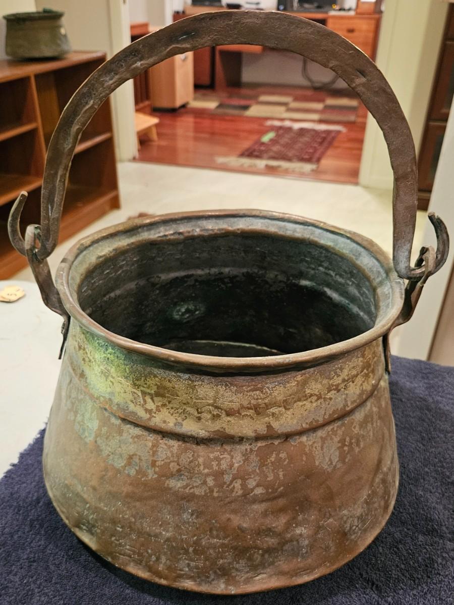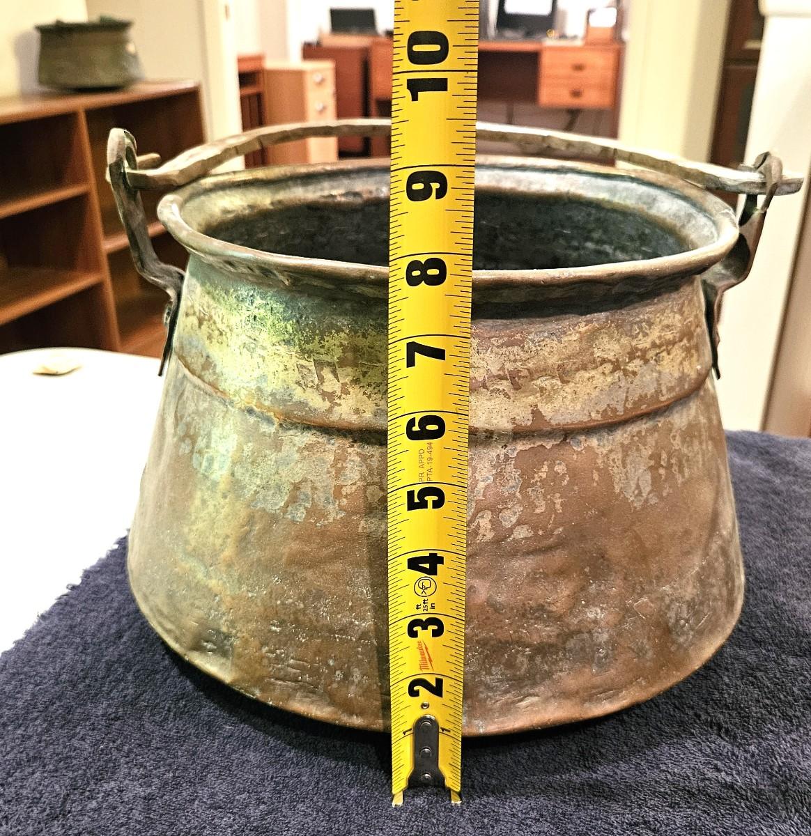Antique Brass Cauldron with a Wrought Iron Handle
