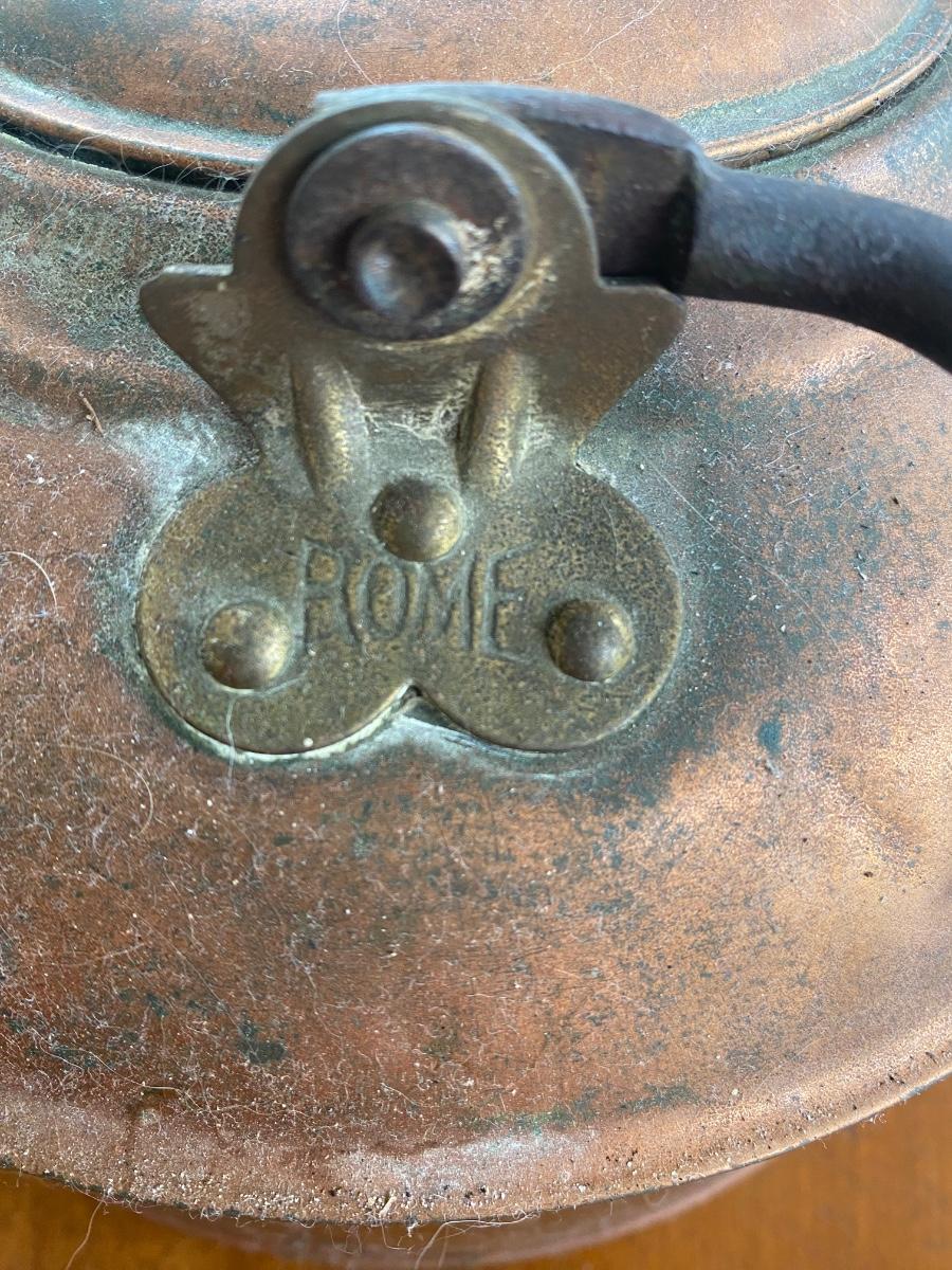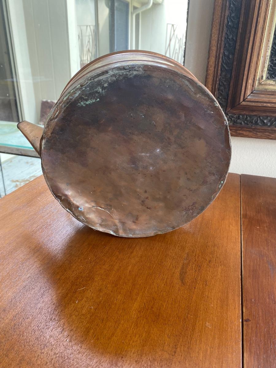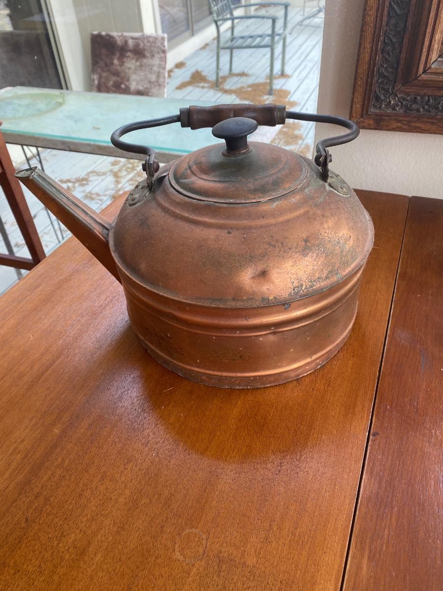 Antique copper kettle with wooden handle